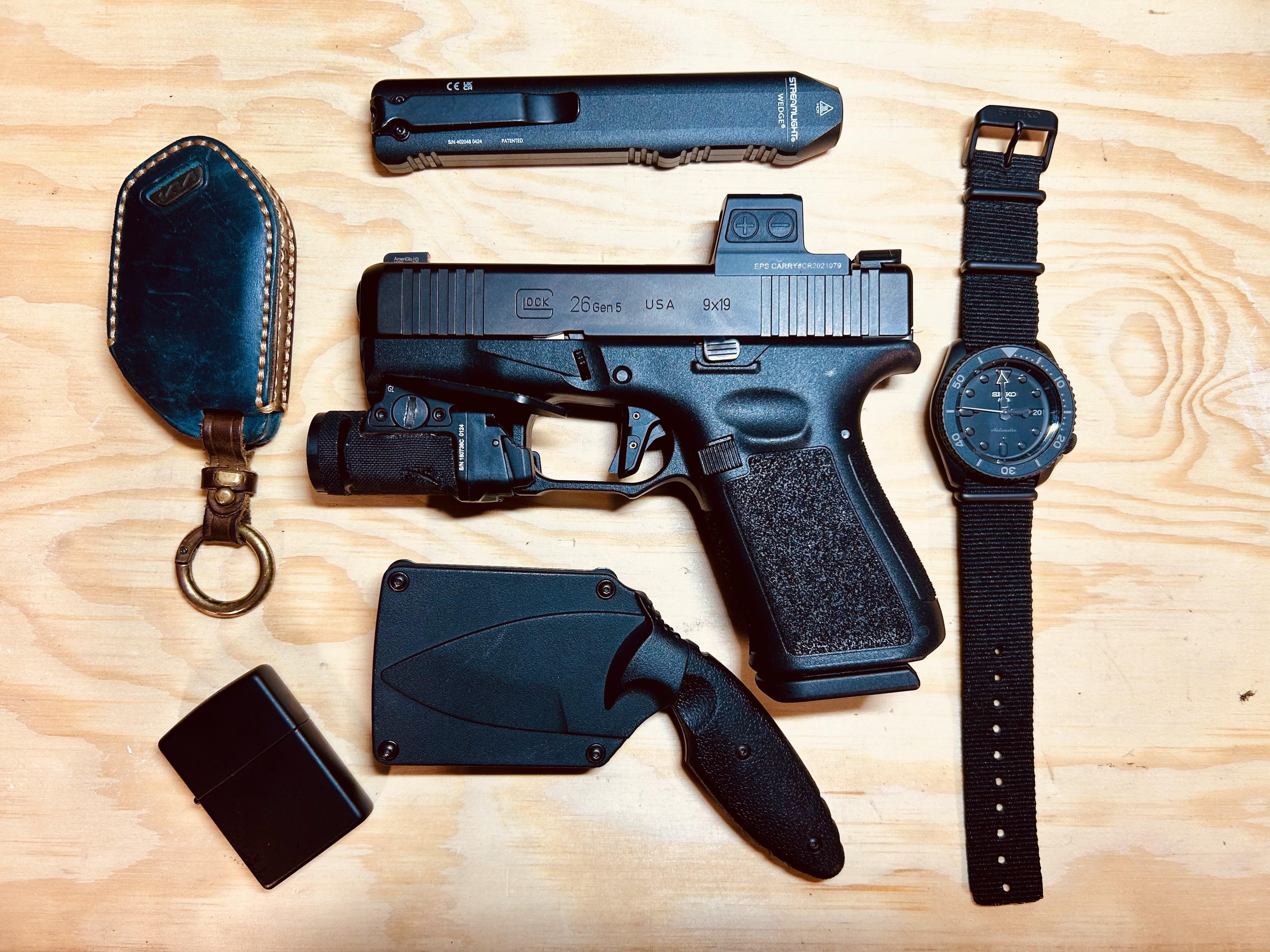 In EDC Updated EDC December 20, 2025 Glock 26X TLR 7 SubSeiko SRPD79KABar TDIKia TellurideSteam light WedgeZippoNeed a new wallet though by SpartanChainer91 EDC Prev Post NLD…Malkoff style December 20, 2025 Next Post Sunday pocket/person dump December 20, 2025 Related Posts My New EDC Blade (first post) January 17, 2026 TGIF, folks! Time to flex and show me what you’ve got! January 16, 2026 College Student EDC January 16, 2026 2 Comments AutoModerator 4 weeks ago Thank you for posting to r/EDC! Include a detailed item list (make/model) within **1 hour** of submission. Lists can go in the title, a comment, or the image. Posts without lists will be removed. If you have already provided a list, not further action is needed, thanks | [FAQ](https://www.reddit.com/r/EDC/wiki/faq)*I am a bot, and this action was performed automatically. Please [contact the moderators of this subreddit](/message/compose/?to=/r/EDC) if you have any questions or concerns.* brando29999 4 weeks ago Is the 26x just a wide 43xWrite A CommentYou must be logged in to post a comment.