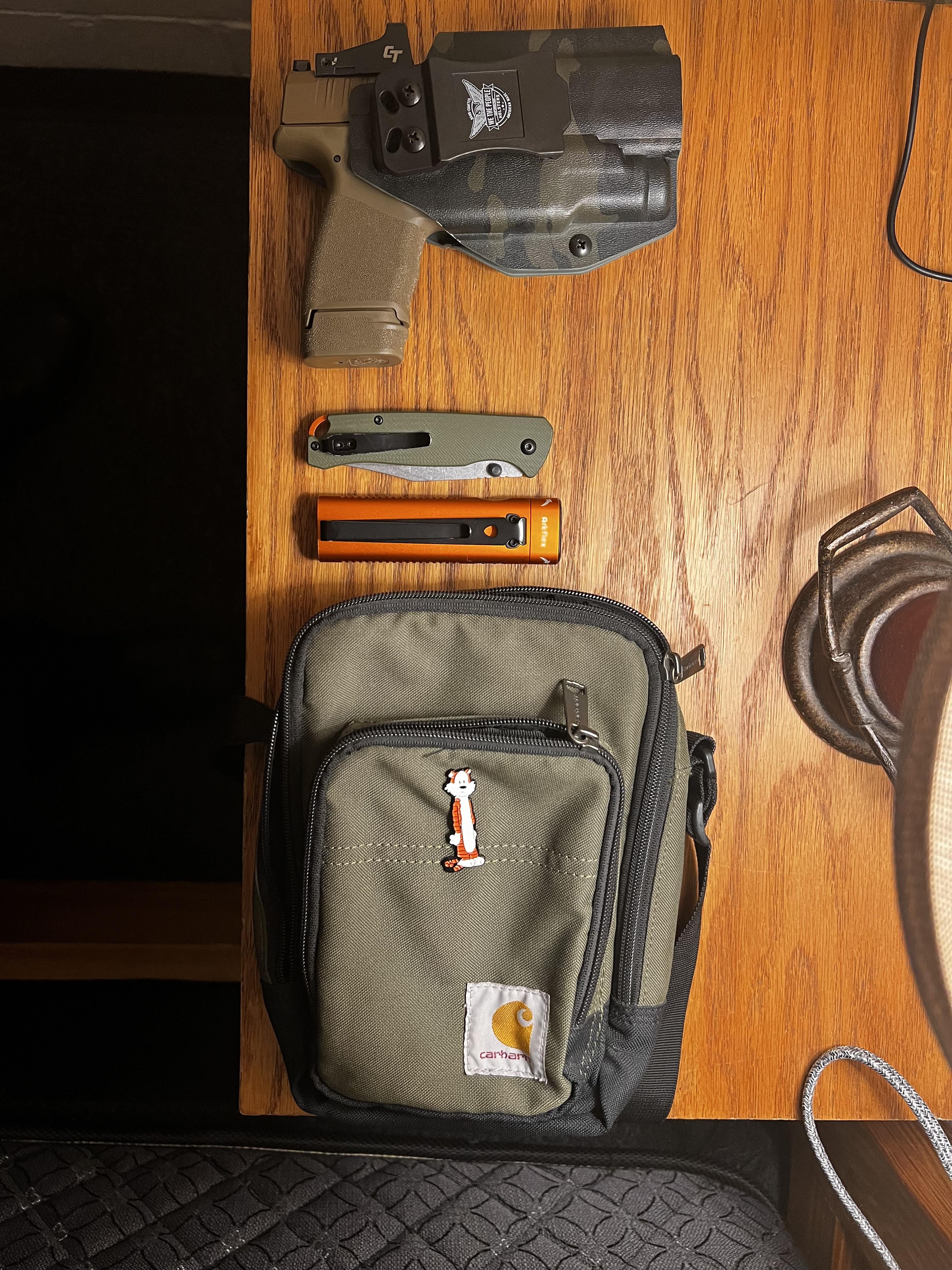 In EDC Rate my setup December 21, 2025 Springfield Hellcat, We the People holster, Ozark Trail Walmart $10 knife, Olight Arkflex, Carhartt man purse, Hobbes. by BeautifulKey8779 EDC Prev Post Throw is ideal for EDC, actually December 21, 2025 Next Post Finally! December 21, 2025 Related Posts Today’s Pocket Dump January 15, 2026 My EDC as a professional mechanic January 15, 2026 Weben G5 white EDC January 15, 2026 2 Comments AutoModerator 4 weeks ago Thank you for posting to r/EDC! Include a detailed item list (make/model) within **1 hour** of submission. Lists can go in the title, a comment, or the image. Posts without lists will be removed. If you have already provided a list, not further action is needed, thanks | [FAQ](https://www.reddit.com/r/EDC/wiki/faq)*I am a bot, and this action was performed automatically. Please [contact the moderators of this subreddit](/message/compose/?to=/r/EDC) if you have any questions or concerns.* EDChunting 4 weeks ago ExcellentWrite A CommentYou must be logged in to post a comment.