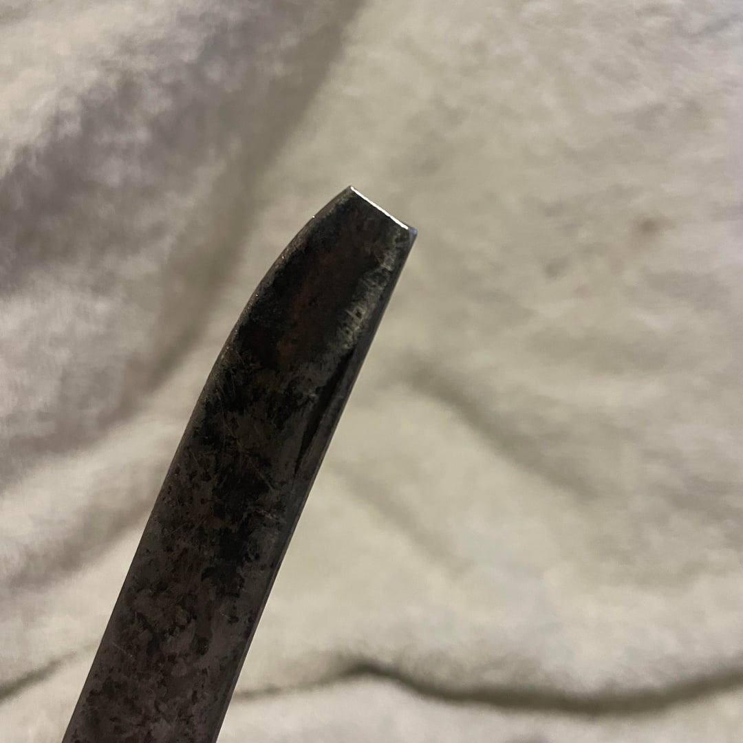 You have two easy options. Clip the tip to make it like a reverse tanto with a low point or drill a convex tip out of what’s there now. Like half a drill bit right out of the end of it.