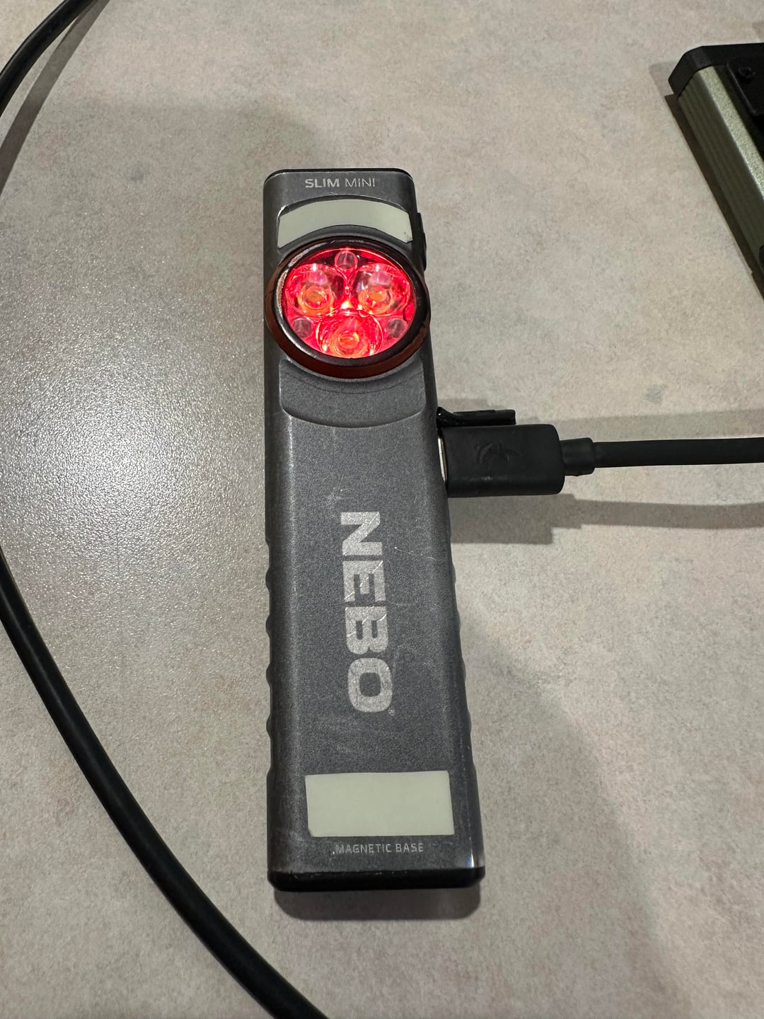 My only complaint with this light after carrying it for three years is that it has both red and blue LEDs to indicate “charging,” and “charged” respectively, but I can’t access those colors during normal function of the light. Would be awesome if it could be reprogrammed. (The stickers are glow-in-the-dark)