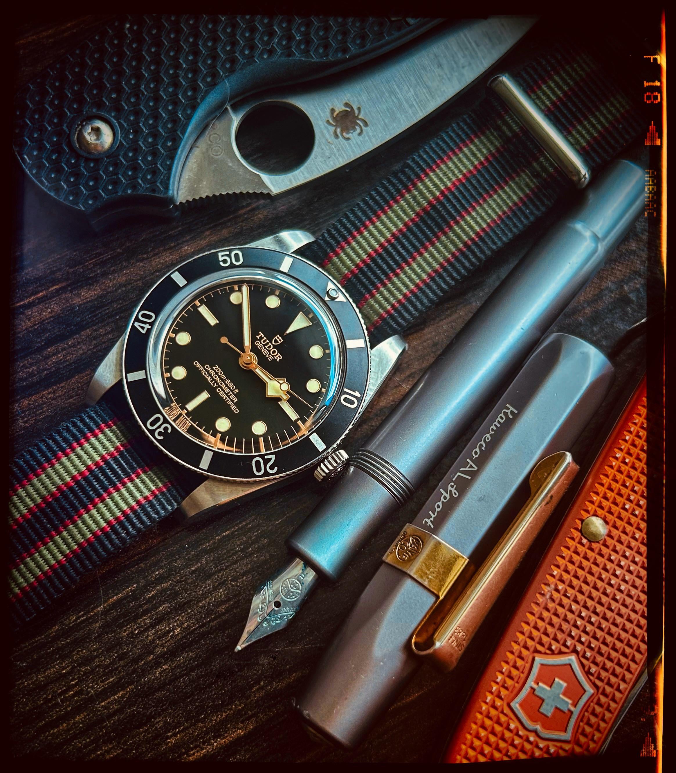 In EDC All my watches end up on NATOs π December 21, 2025 Nothing else is as comfortable imho.Tudor BB 54Victorinox Alox PioneerKaweco Al-Sport fountain penSpyderco Sage FRNby FrontAdmirable5654 EDC Prev Post Saw this in an ad. Thought you guys would dig it, especially those of us that miss the days of the big heavy mag lights. December 21, 2025 Next Post Shibriya Dagger (year 1993) December 21, 2025 Related Posts Mom of 3 EDC January 15, 2026 Todayβs Pocket Dump January 15, 2026 My EDC as a professional mechanic January 15, 2026 2 Comments AutoModerator 4 weeks ago Thank you for posting to r/EDC! Include a detailed item list (make/model) within **1 hour** of submission. Lists can go in the title, a comment, or the image. Posts without lists will be removed. If you have already provided a list, not further action is needed, thanks | [FAQ](https://www.reddit.com/r/EDC/wiki/faq)*I am a bot, and this action was performed automatically. Please [contact the moderators of this subreddit](/message/compose/?to=/r/EDC) if you have any questions or concerns.* sappersebi69 4 weeks ago Very nice!Write A CommentYou must be logged in to post a comment.