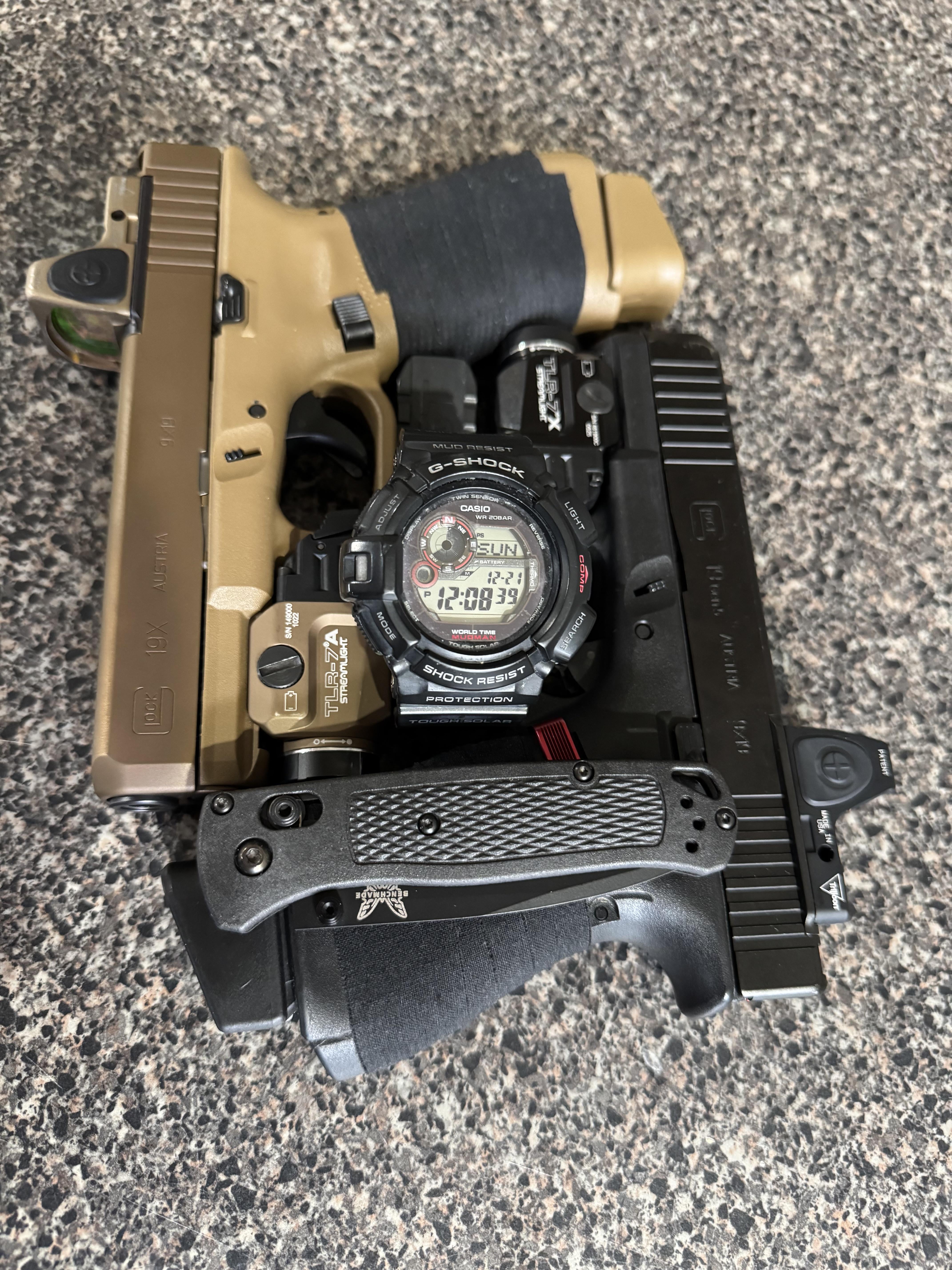In EDC Can’t get anymore practical December 21, 2025 2 G19(1 X) with stream lights and rmrs. G-Shock 9300 (BOLOing for a desert one). Benchmade mini griptillian.by LilGrippers EDC Prev Post Kieran Mcneilly – Telecaster December 21, 2025 Next Post Wurkkos WK03 Nichia 519A 😼 December 21, 2025 Related Posts Mom of 3 EDC January 15, 2026 Today’s Pocket Dump January 15, 2026 My EDC as a professional mechanic January 15, 2026 2 Comments AutoModerator 4 weeks ago Thank you for posting to r/EDC! Include a detailed item list (make/model) within **1 hour** of submission. Lists can go in the title, a comment, or the image. Posts without lists will be removed. If you have already provided a list, not further action is needed, thanks | [FAQ](https://www.reddit.com/r/EDC/wiki/faq)*I am a bot, and this action was performed automatically. Please [contact the moderators of this subreddit](/message/compose/?to=/r/EDC) if you have any questions or concerns.* EDChunting 4 weeks ago Fkn excellentWrite A CommentYou must be logged in to post a comment.