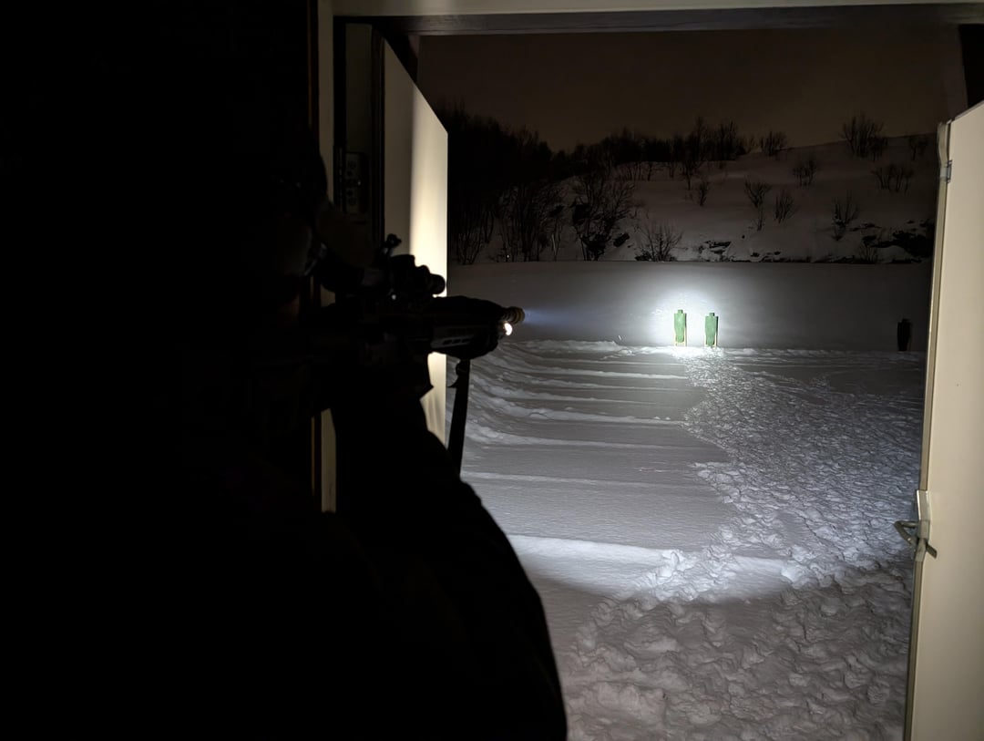 Darkest day of the year is good time for training with lights, and today we tested the W65B (LH8V2 head) from Weltool. 128k candela and 1600 lumen in a Surefire DF format. Super bright hotspot that easily illuminates targets out to 200-300 meters (depending on conditions, not easy with heavy snow), with great spill for indoor activities. Definitely a new favorite.