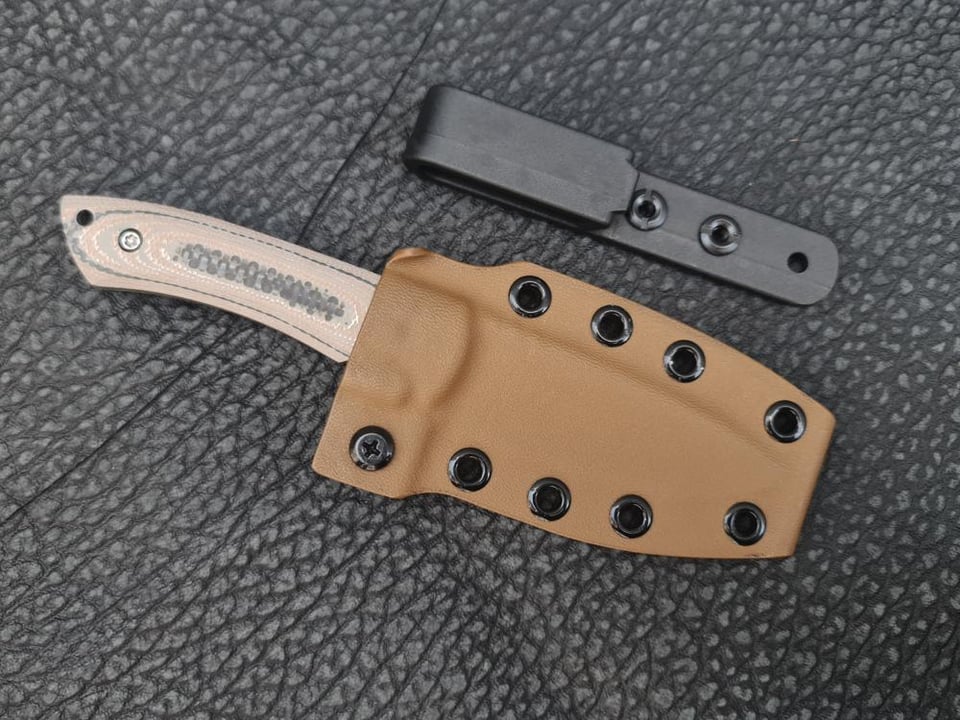 Did things a little different with the micros this time around. Thinner edges, higher grinds, cool sheath with adjustable retention.. a little bulkier but a cool feature. I can do one line of eyelits too if anyone wants it really slim