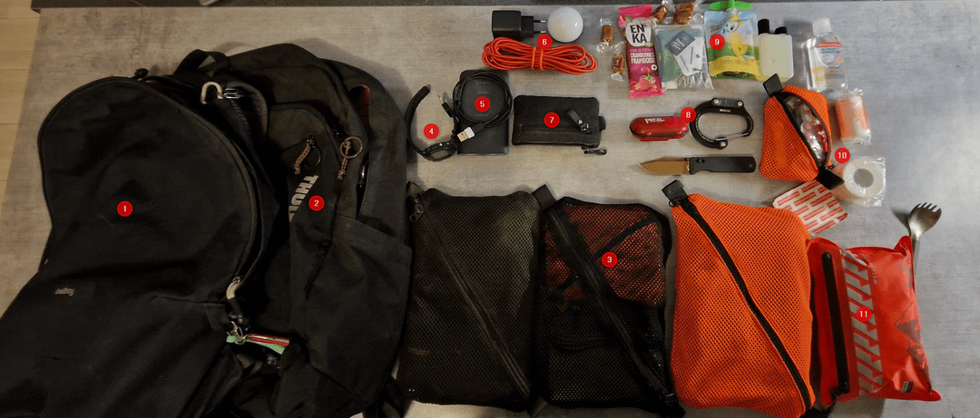 1&2 backpacks, 1 thule backpack for week ends or if I take my laptop. The other is the bellroy lite backpack for everyday and I take it also on holidays, as it is foldable.