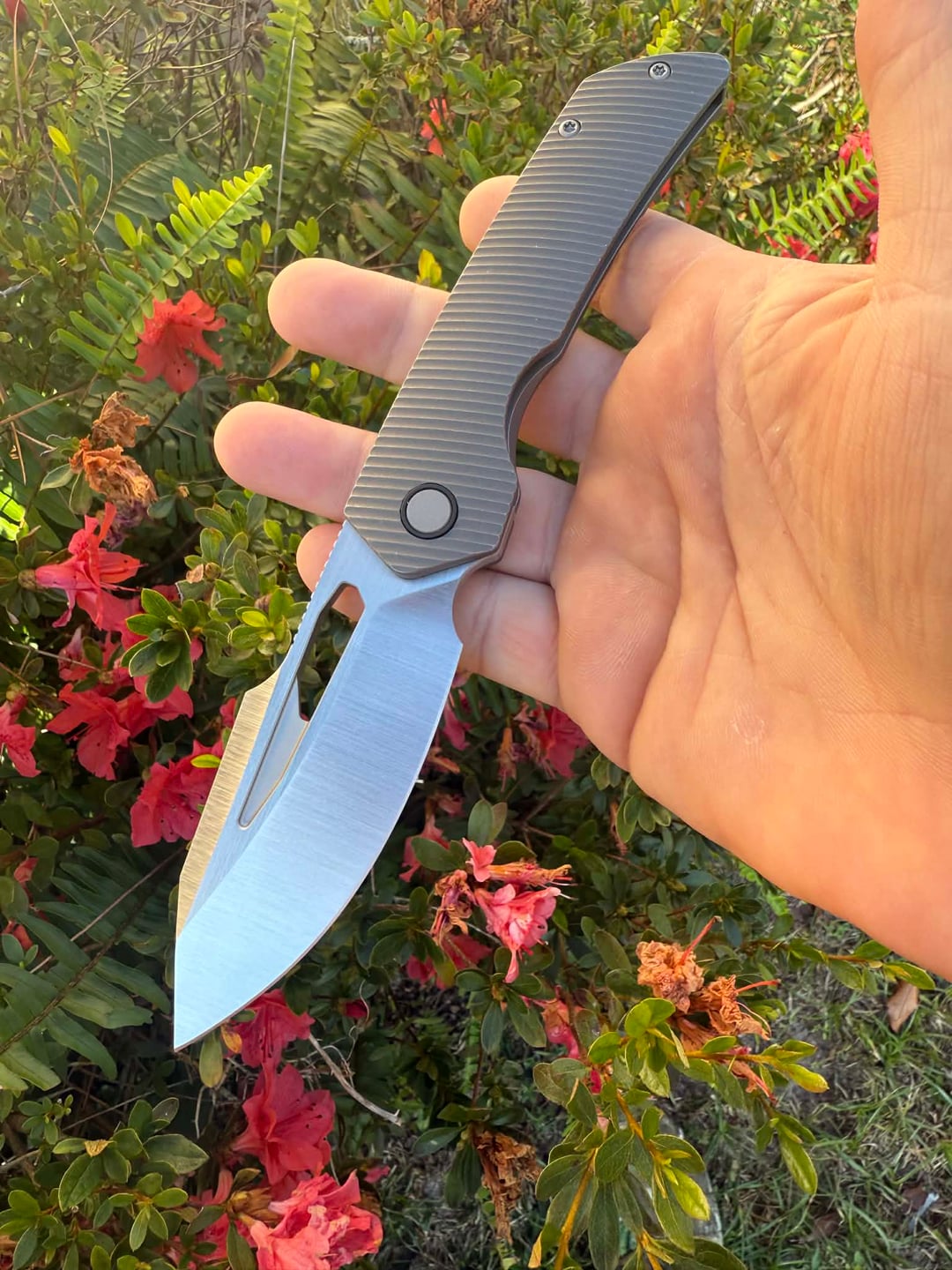 7.89” overall length, 3 3/8” blade, titanium franelock, pocket clip, and back spacer. 330 tyd shipped UPS