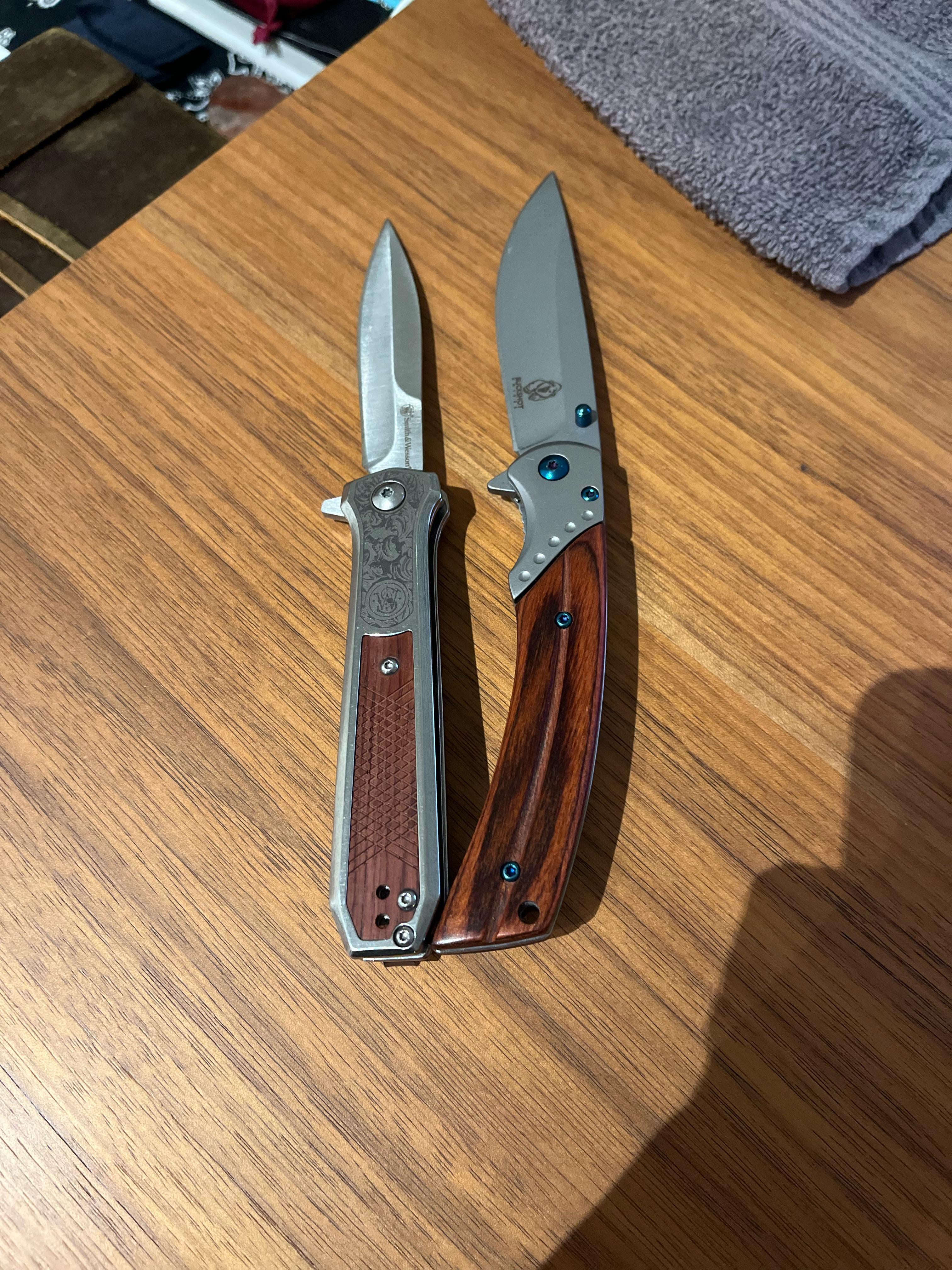 Hello, I’m looking for some recommendations on good pocket knives for an every day carry. I tend to prefer knives that have a straight blade, and have some weight to them. These are what I currently tend to carry, the bigger one is from Buckshot knives and the slimmer one is Smith & Wesson. I don’t have a preference for a wider or slimmer blade for the most part, I’m open to either. Any recommendations for me?