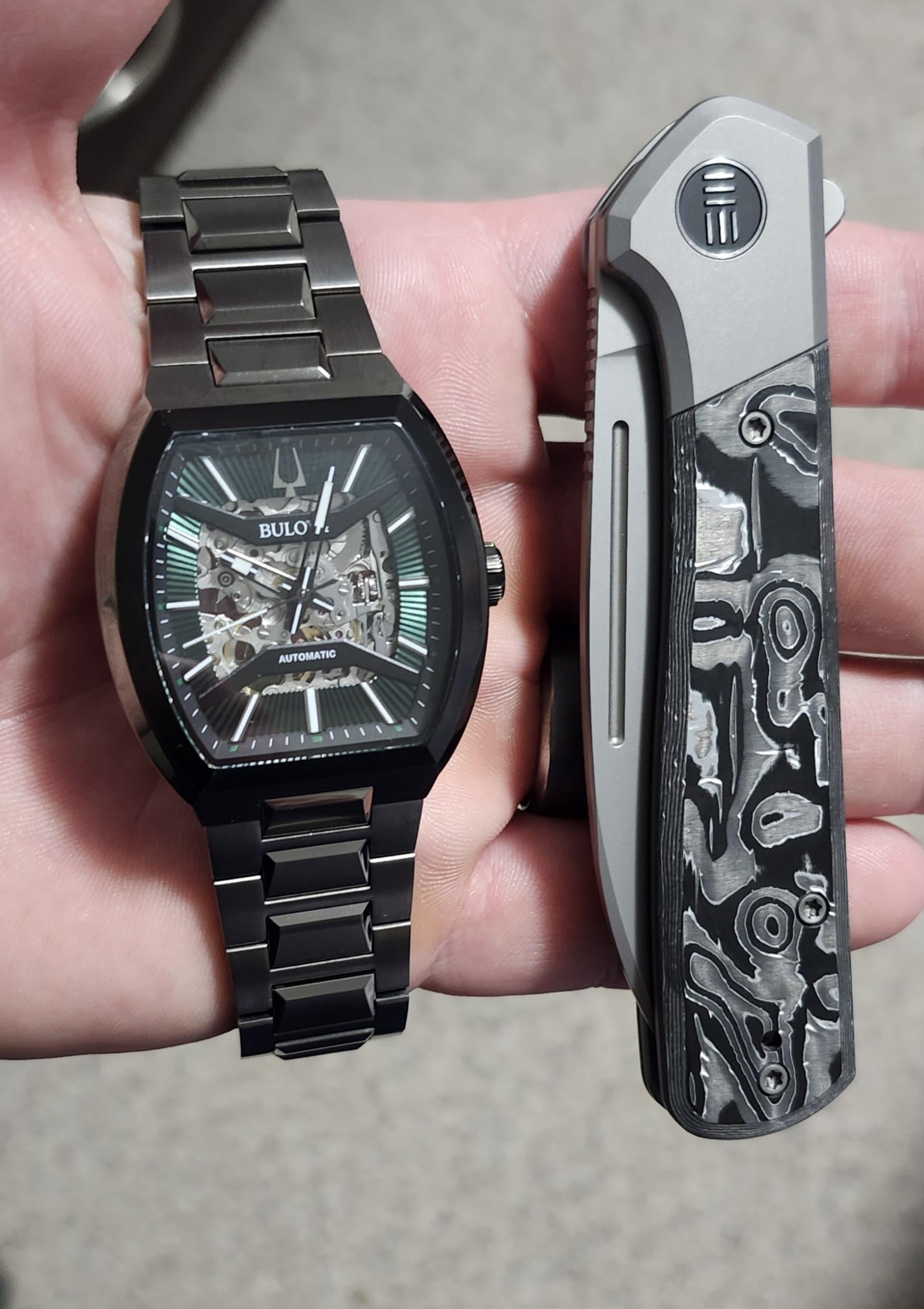 Going out to do some last minute shopping, taking the watch my wife bought me for our 20th anniversary this year, and the We Soothsayer. Gotta admit, I like this knife a whole lot more than I thought I would. I also admit I like knives that aren’t very popular, I guess that’s my thing.