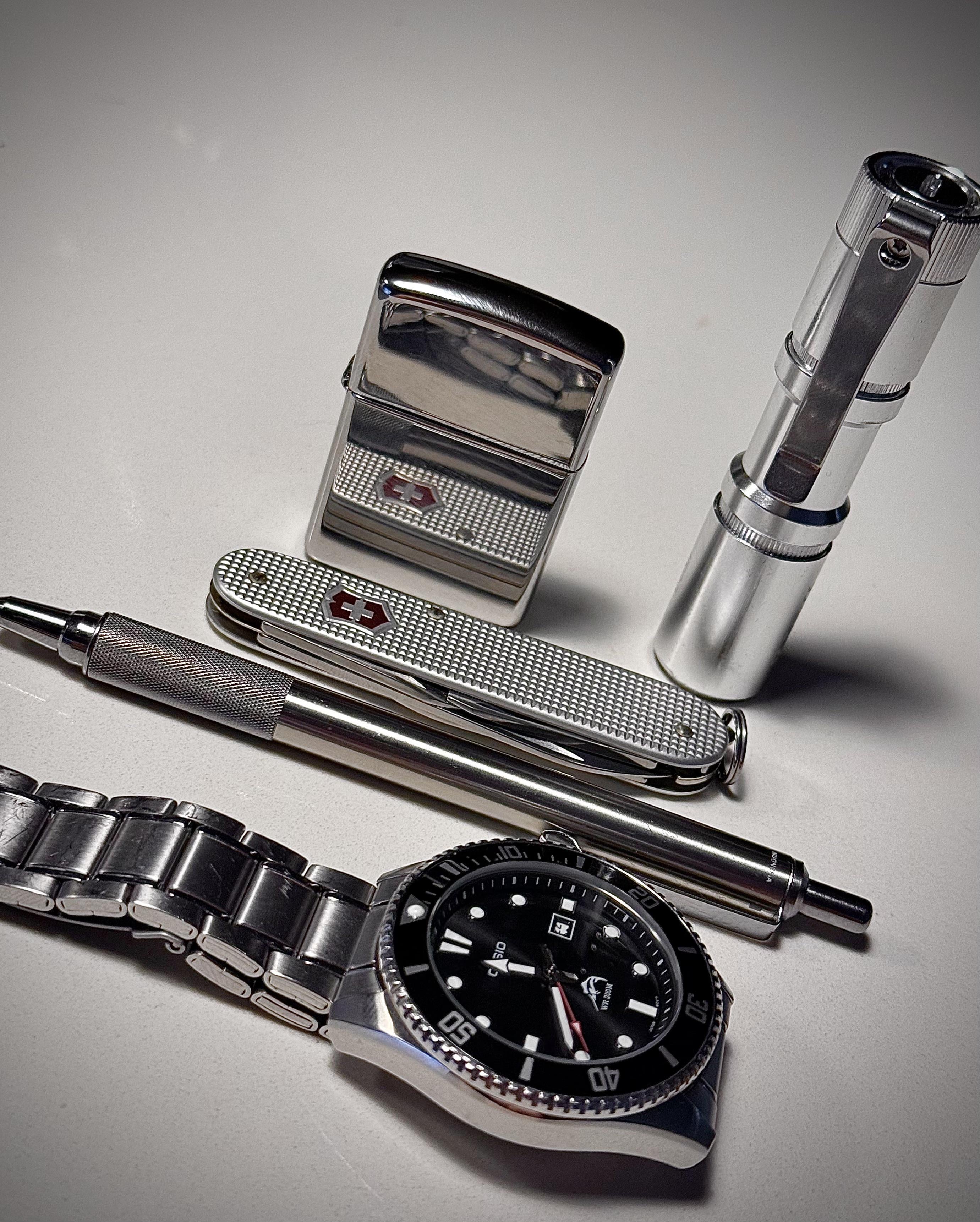 In EDC My carry for a year straight December 24, 2025 Zippo lighter Manker eo5ii Victorinox cadet Zebra f701 Casio duroby eplums EDC Prev Post My carry knife for the next few days; a Christmas Buck from ’76 December 24, 2025 Next Post What’s your favorite/best flashlight of 2025? December 24, 2025 Related Posts What’s Your favorite EDC nailclippers? January 16, 2026 Nail clipper aka cable strippet January 16, 2026 Flashback Friday: late 90s / early 00 EDC January 16, 2026 1 Comment AutoModerator 3 weeks ago Thank you for posting to r/EDC! Include a detailed item list (make/model) within **1 hour** of submission. Lists can go in the title, a comment, or the image. Posts without lists will be removed. If you have already provided a list, not further action is needed, thanks | [FAQ](https://www.reddit.com/r/EDC/wiki/faq)*I am a bot, and this action was performed automatically. Please [contact the moderators of this subreddit](/message/compose/?to=/r/EDC) if you have any questions or concerns.*Write A CommentYou must be logged in to post a comment.