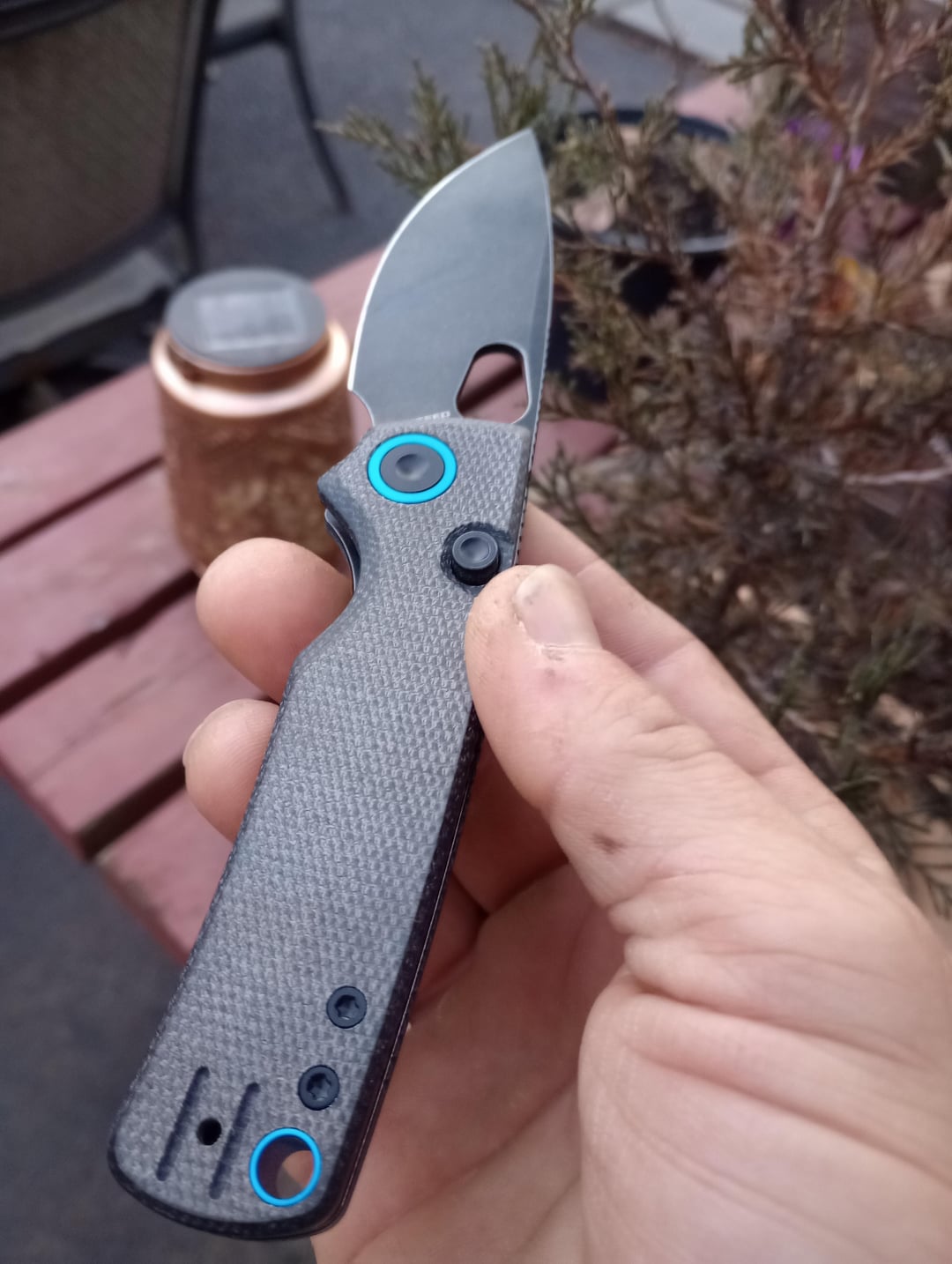 I ordered the thumb stub variant of the Porcupine with the Dune color blade and black micarta handle. I thought I would prefer a thumb stud bc if reviews I saw on the deployment of blade with blade hole. But I'm so glad Amazon sent the blade hole variant! Its incredibly fun, holy shit!!! Got a smooth action out of box, sharp as a razor and a pretty solid detent. I would have been bored with the thumb stud…thank you Amazon.