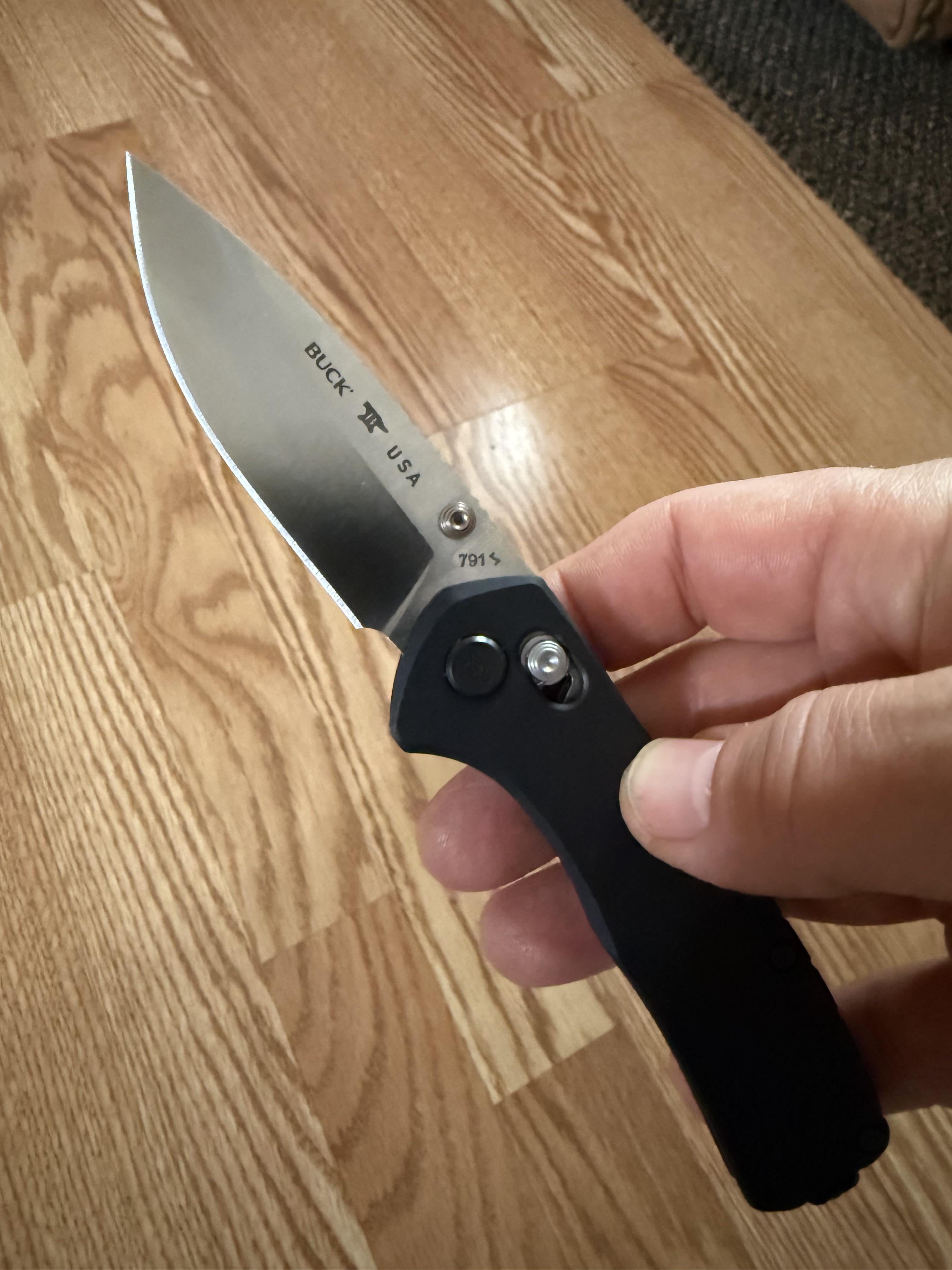 My knife nerd buddy Sean sent me this beaut for Xmas! Anodized aluminum handle with Magnacut. Been a lot of talk about how important heat treatment is, and supposedly Buck has it dialed in on these. The factory grind is awesome and it came razor sharp. Stoked!