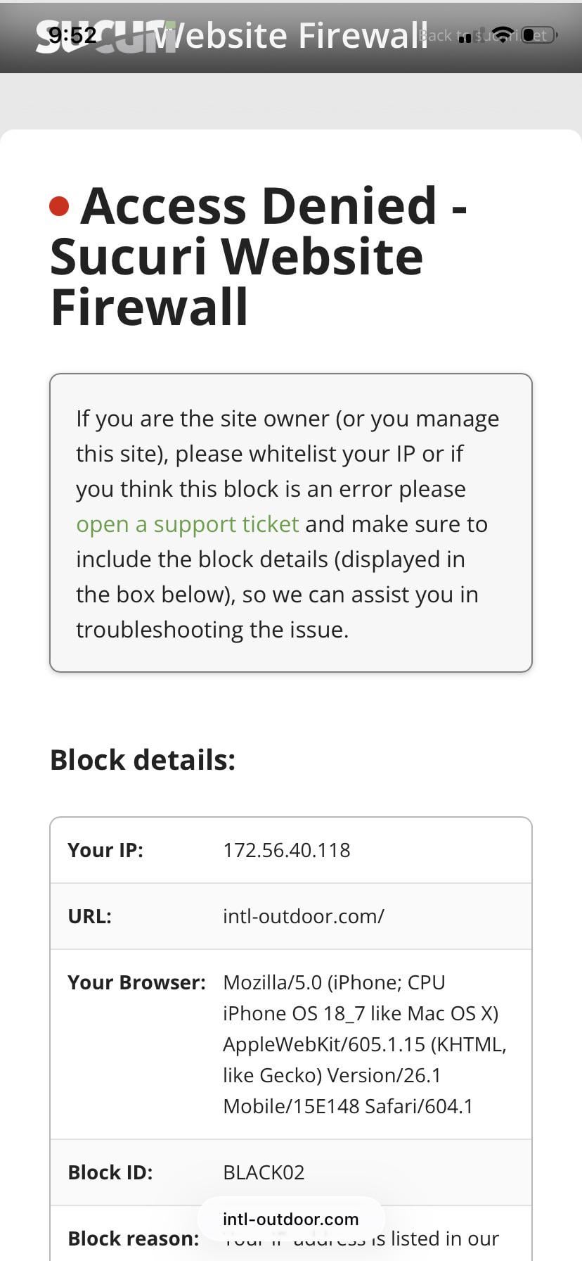 Has anyone encountered this before I ordered some Hank lights a few weeks ago and they delivered fine. The site has been working fine then all of a sudden I get this message the last two days.