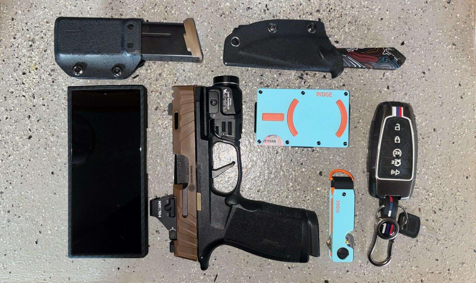In EDC Ridge Wallet and Key Holder December 25, 2025 Samsung Z Fold 7 Sig Sauer P365 XMacro Spectre Comp Spare Magazine Kizer Mini Harpoon Ridge Magsafe GT Wallet Ridge GT Key Holder Mustang GT Key Fob by DASWARBOYS EDC Prev Post Merry Christmas December 25, 2025 Next Post Wife Bought A Bunch of Knives December 25, 2025 Related Posts Actual EDC and slightly extended EDC January 15, 2026 Cheap off day EDC January 15, 2026 3rd Shifter January 15, 2026 1 Comment AutoModerator 3 weeks ago Thank you for posting to r/EDC! Include a detailed item list (make/model) within **1 hour** of submission. Lists can go in the title, a comment, or the image. Posts without lists will be removed. If you have already provided a list, not further action is needed, thanks | [FAQ](https://www.reddit.com/r/EDC/wiki/faq)*I am a bot, and this action was performed automatically. Please [contact the moderators of this subreddit](/message/compose/?to=/r/EDC) if you have any questions or concerns.*Write A CommentYou must be logged in to post a comment.