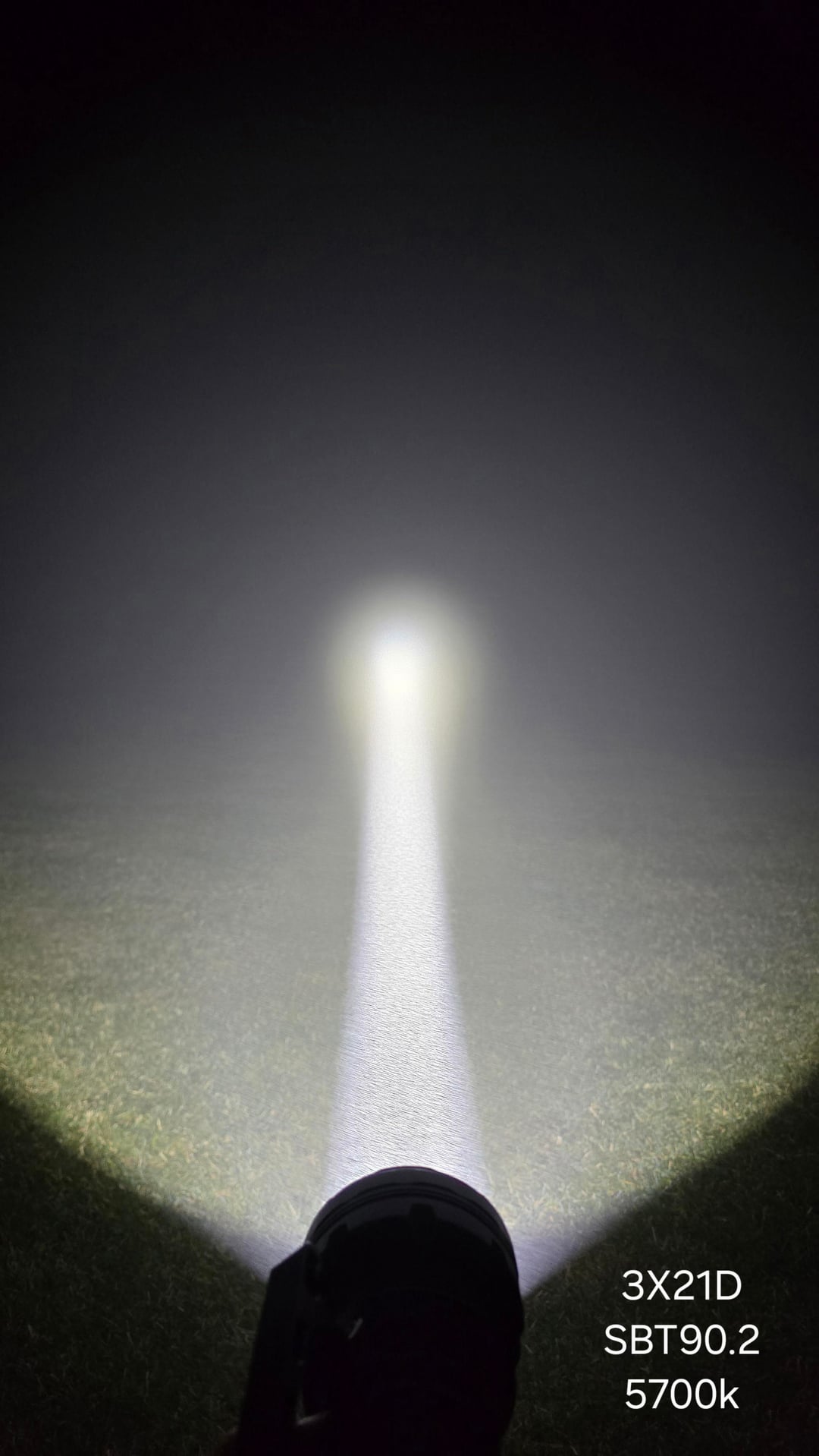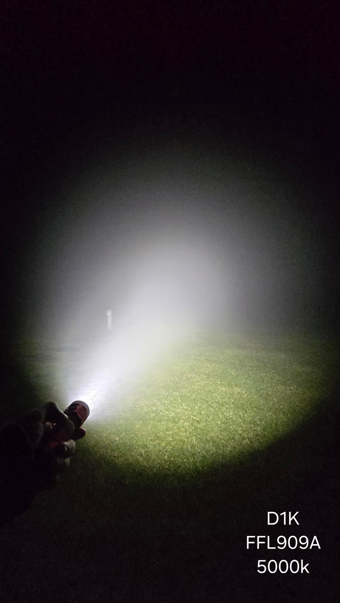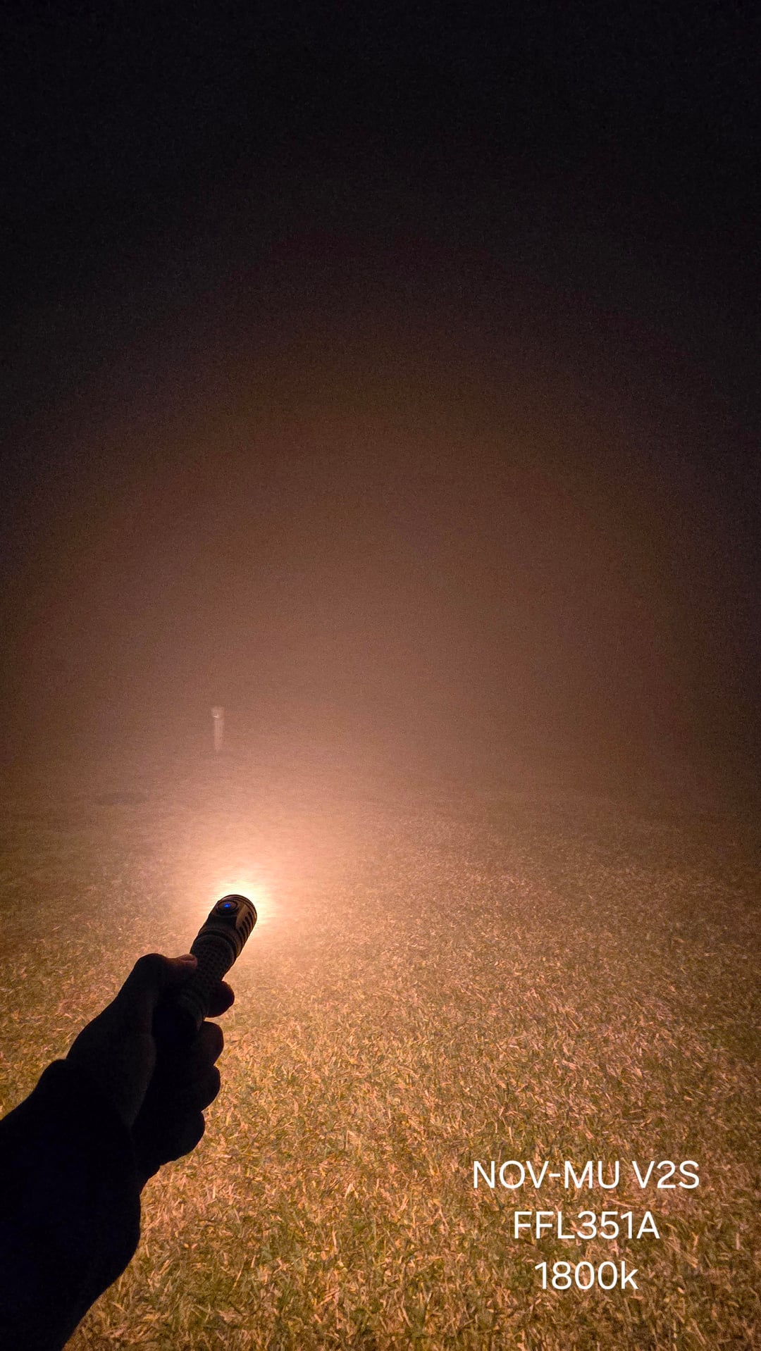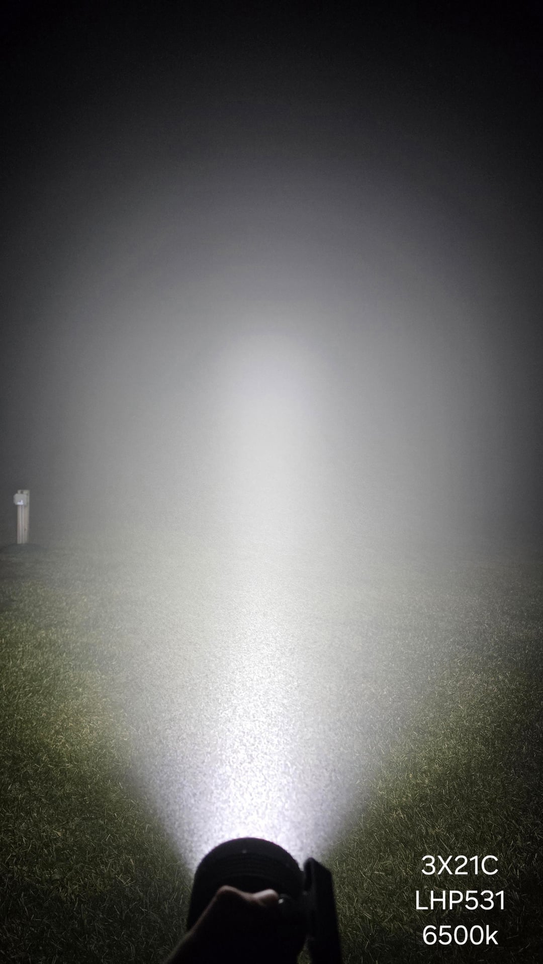 Took the dogs out and saw we had some dense fog. Brought out some different hotrods to test out how they do. Almost seems like more lumens means more backscatter and less visibility. More candela and less lumens is somewhat better as you can see with the L21B SFT25r. Pictures are labeled with what lights and emitters shown. Pictures were taken with Auto WB on a Galaxy s24 Ultra.