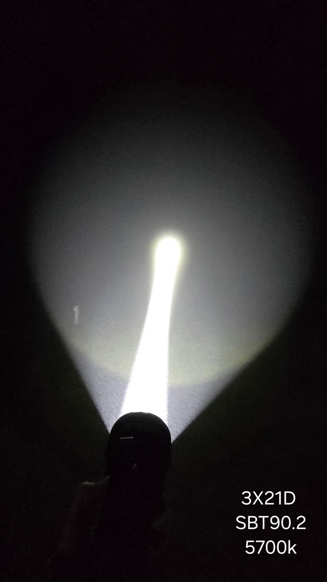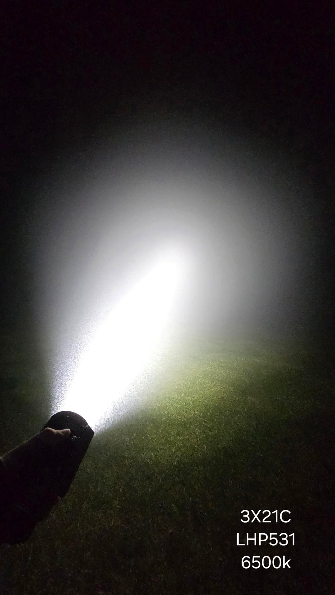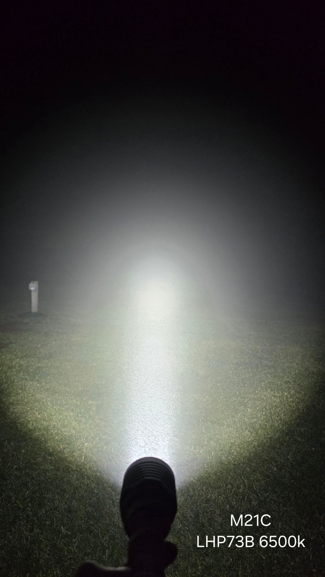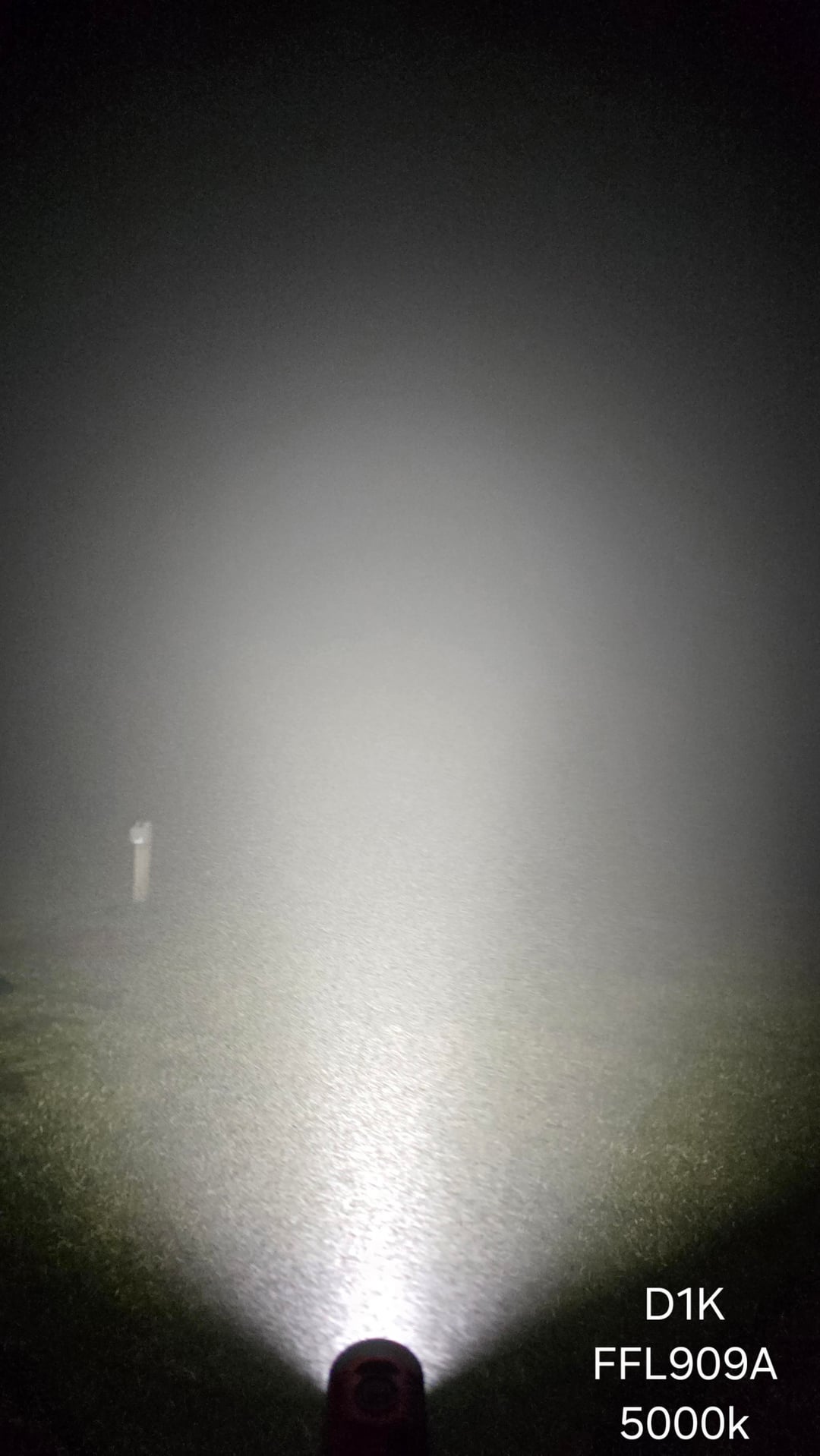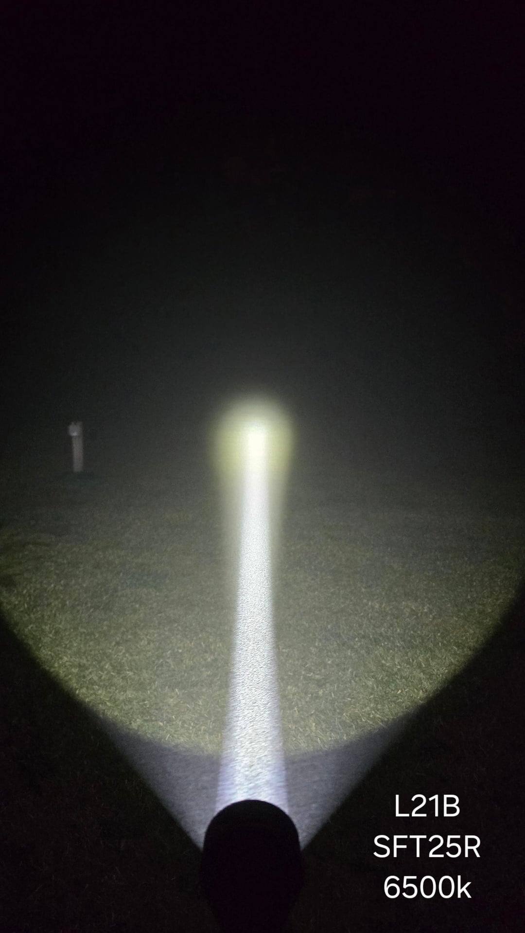 Took the dogs out and saw we had some dense fog. Brought out some different hotrods to test out how they do. Almost seems like more lumens means more backscatter and less visibility. More candela and less lumens is somewhat better as you can see with the L21B SFT25r. Pictures are labeled with what lights and emitters shown. Pictures were taken with Auto WB on a Galaxy s24 Ultra.