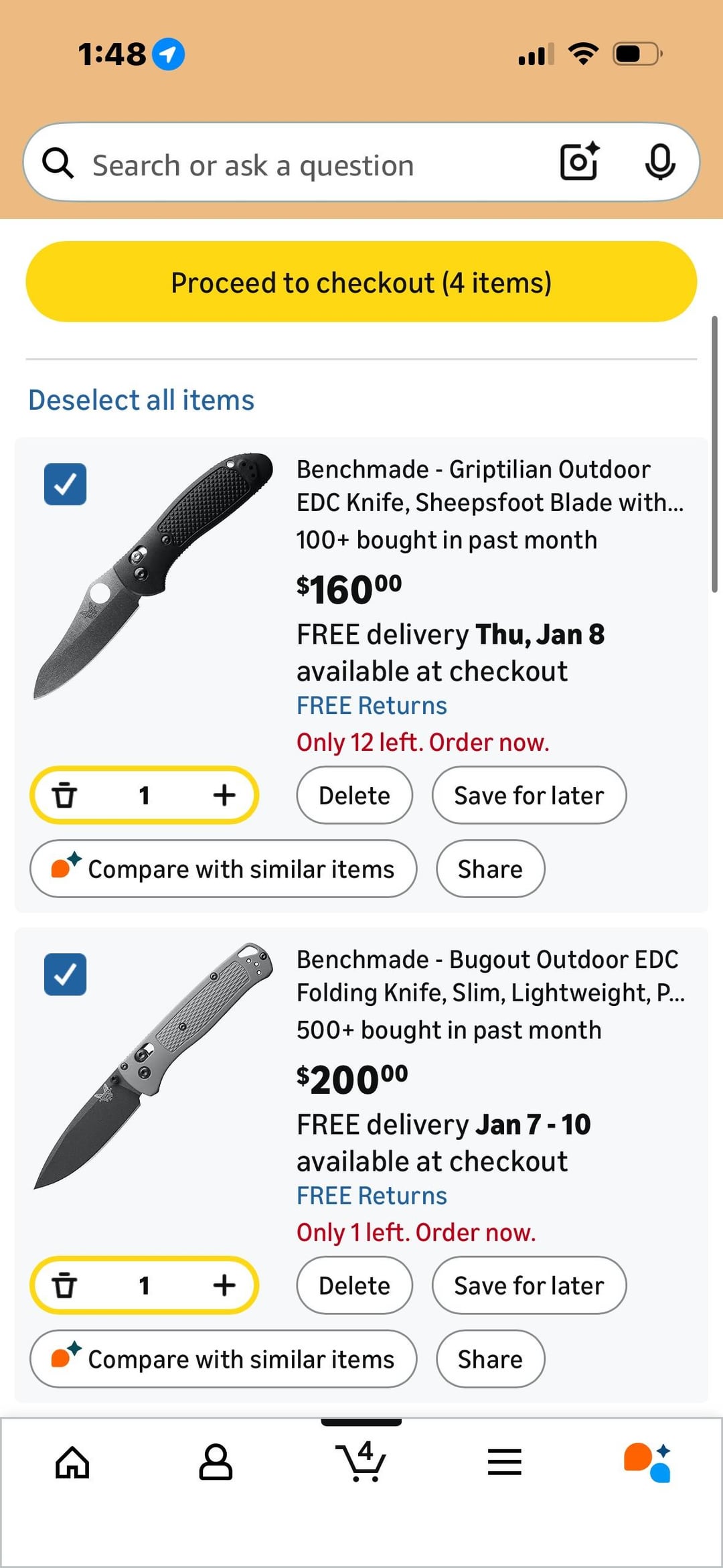 Help me choose between these 4. I likely don’t need something stronger than the bugout, however, I’d like to buy one knife that kind of does it all. I have a $200 gift card to Amazon so that is my limit and it needs to be on Amazon. Open to any other suggestions.