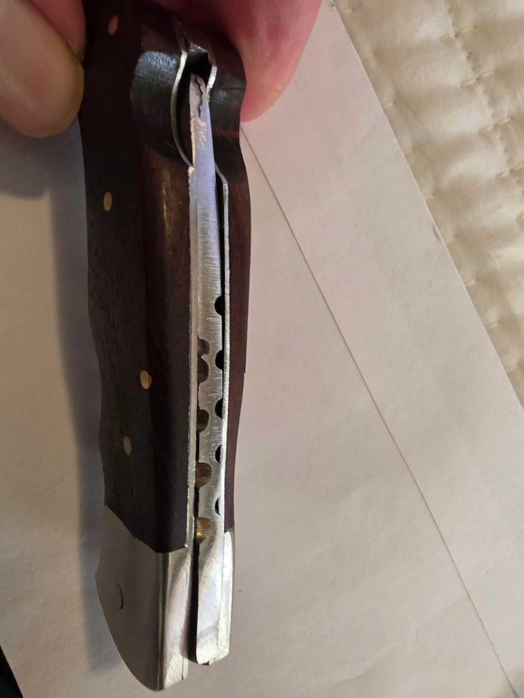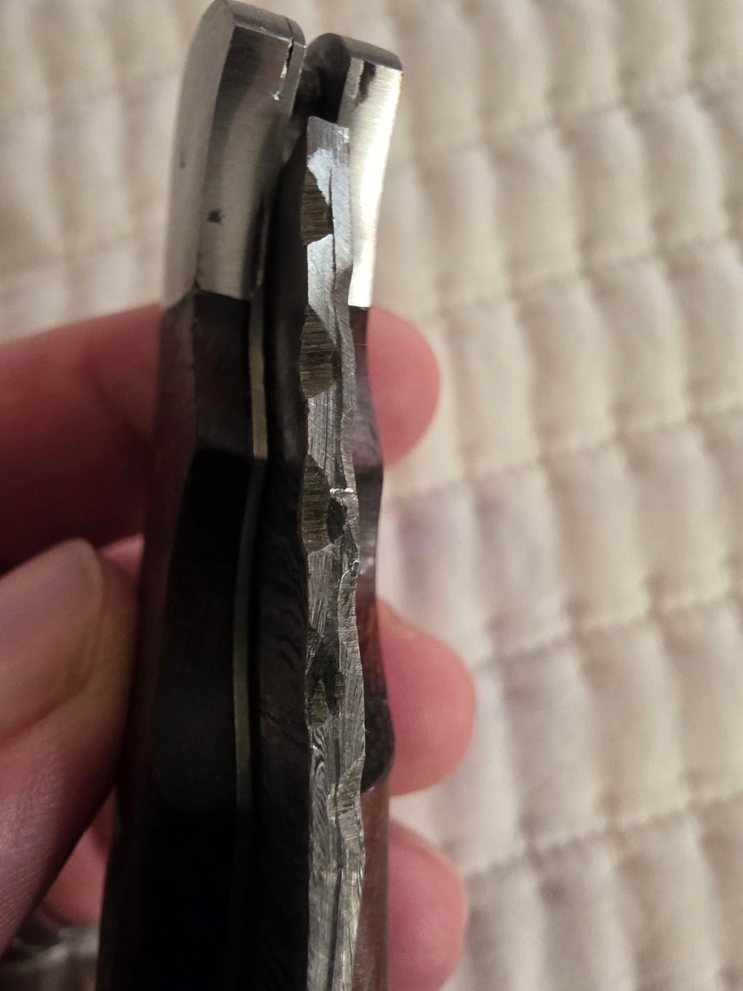 Are those chunks missing out of the spine? And in your follow picture of the blade, just oh no. Steel aside, that grind looks like it was sharpened vertically on a brick.
