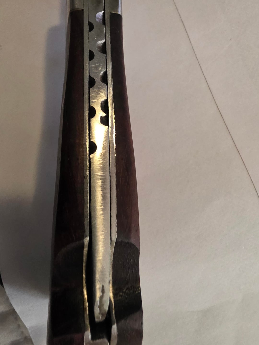 Everyone who's a knife Enthusiast has probably had their wife/girlfriend/ non-enthusiast buddy or relative give you a gift because they know you love blades. Absolute respect and love to my friend who bought this for me as a Christmas gift. The thought is what counts…. But it doesn't change the fact that this is a bona fide piece of shit. They told him it was Damascus steel and handmade with recovered wood from a sunken boat…. The knife should have gone down with the ship .
