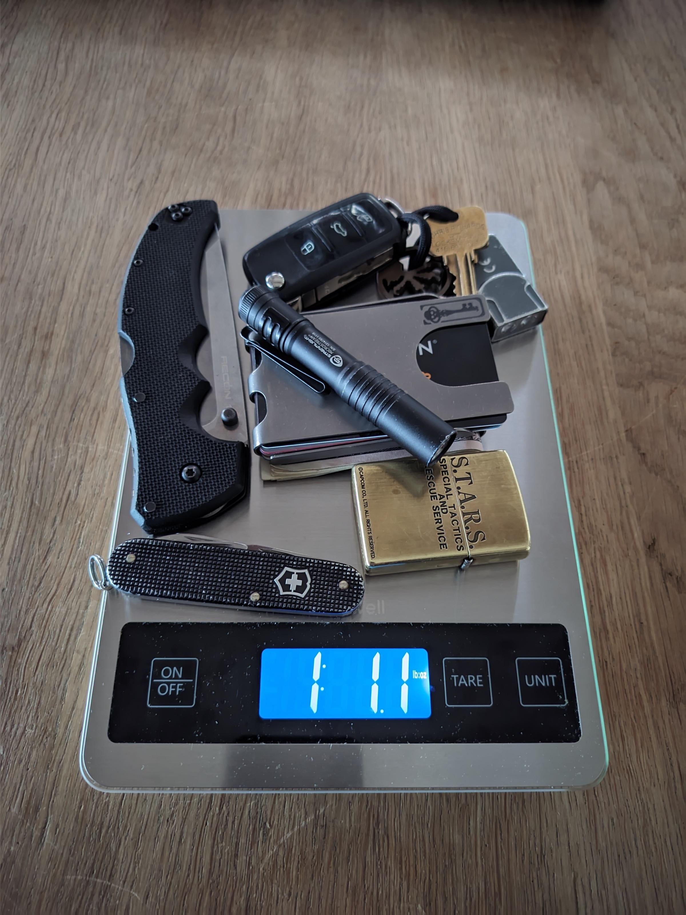 In EDC What’s your junk weigh? Everything in my pockets today. December 27, 2025 Old school Cold steel recon 1 tanto in aus8 with the coating stripped. Stars zippo. Cadet alox. Chaves wallet. Microstream flashlight. Keys. by xeurox EDC Prev Post First OTF December 27, 2025 Next Post Post Christmas Carry December 27, 2025 Related Posts TGIF, folks! Time to flex and show me what you’ve got! January 16, 2026 College Student EDC January 16, 2026 EDC 19/yo on the go caregiver January 16, 2026 1 Comment AutoModerator 3 weeks ago Thank you for posting to r/EDC! Include a detailed item list (make/model) within **1 hour** of submission. Lists can go in the title, a comment, or the image. Posts without lists will be removed. If you have already provided a list, not further action is needed, thanks | [FAQ](https://www.reddit.com/r/EDC/wiki/faq)*I am a bot, and this action was performed automatically. Please [contact the moderators of this subreddit](/message/compose/?to=/r/EDC) if you have any questions or concerns.*Write A CommentYou must be logged in to post a comment.