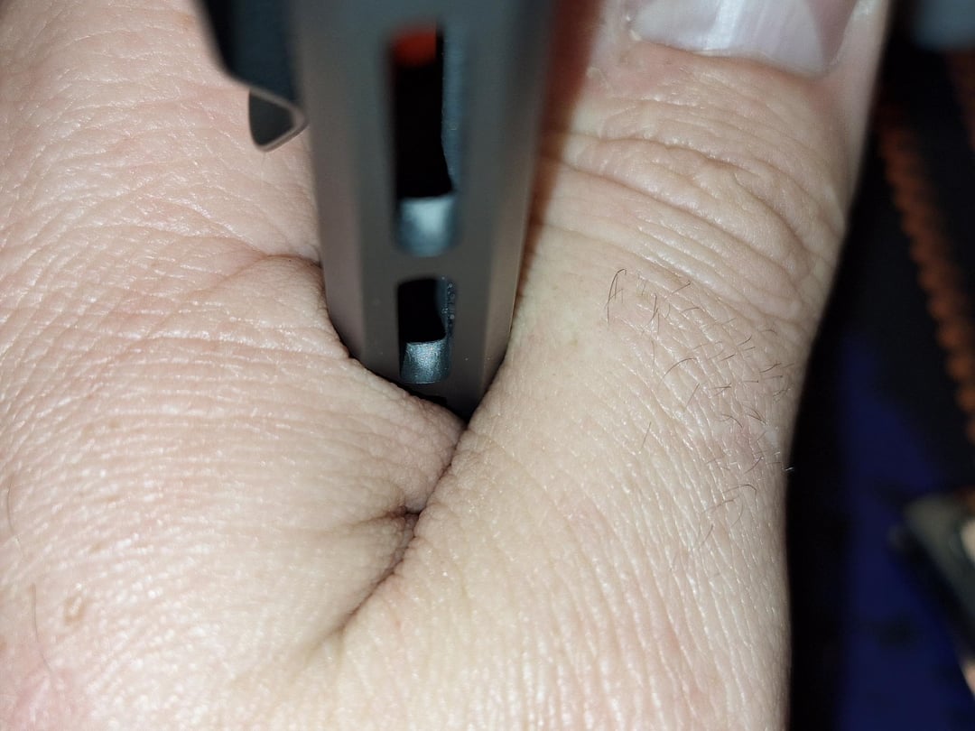 Handle Hotspot : I watched a review where Ken Onion was talking about how the new pivot design of the RMX allows them to make the handle substantially cheaper, and it kind of feels that way. The base of the handle is a square that has insane hotspots in the hand and is very uncomfortable to hold. It is missing a critical chamfer.