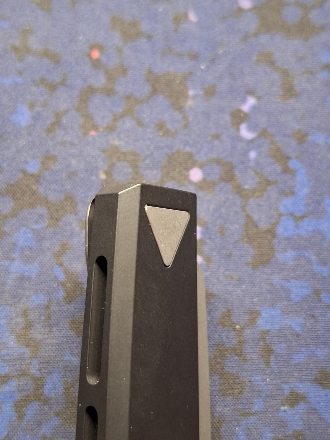 Blade : I have the 3V reverse tanto. The blade is designed to be a scalpel in your pocket. Why is there a choil on it? I can't use the choil, because it's too small and I end up knicking my finger on the blade. Just ditch the choil please. Also, why are there triangles machined into the blade? They serve no functional purpose besides creating a pocket for dirt and moisture to collect. If the knife allowed me to thumb-flick it open, then it would be perfect. The blade is every so slightly off center, but it's straight, so I can't complain. I'm not really a stickler for blade centering either.