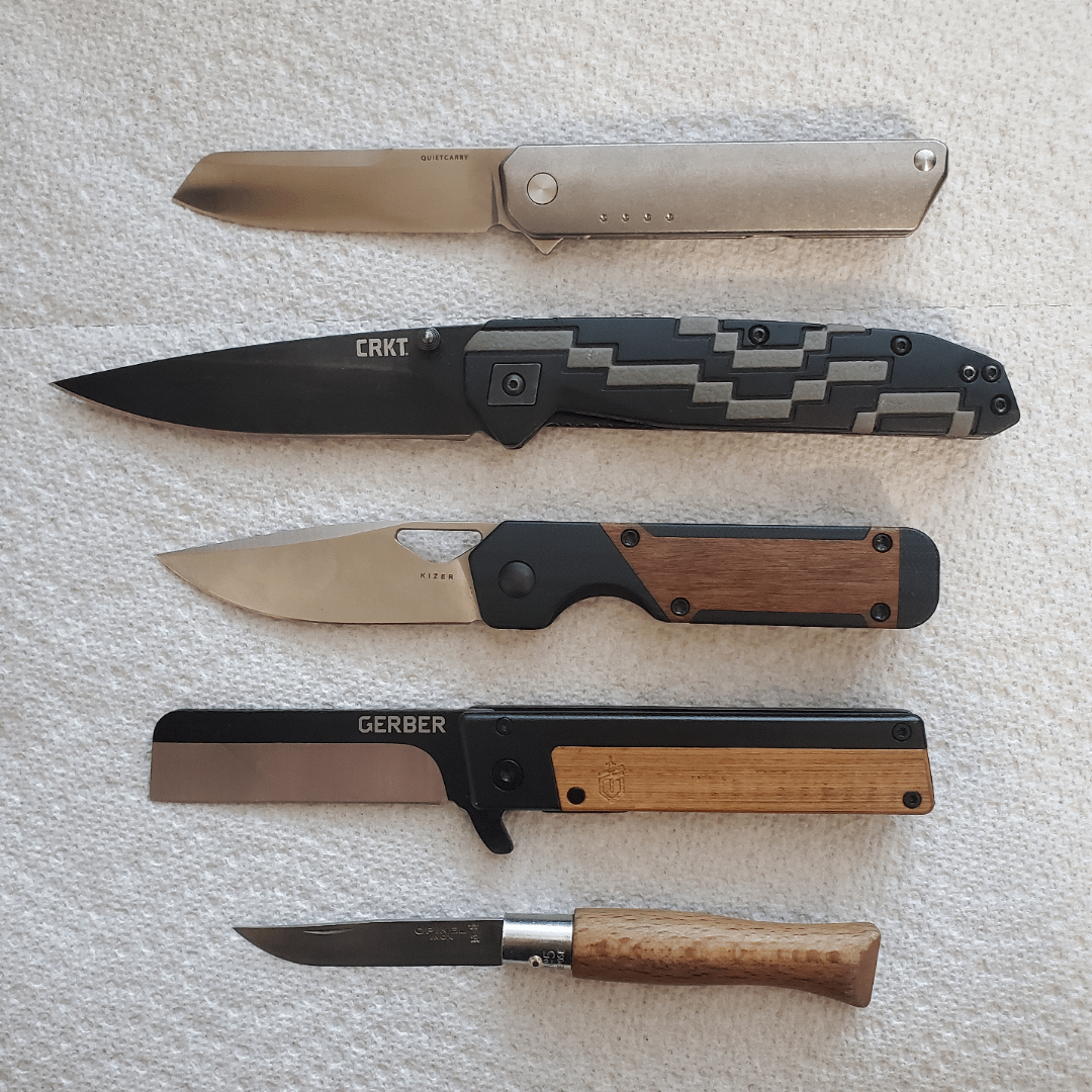I have carried an Opinel No8 in my pocket for years and been pretty much content with that, found this CRKT on the sidewalk a few months back and became totally enamored with the flip action. Began learning more about what makes a quality knife and how to care for them. Some of these are gifts, some just fun acquisitions. What should I look at next?