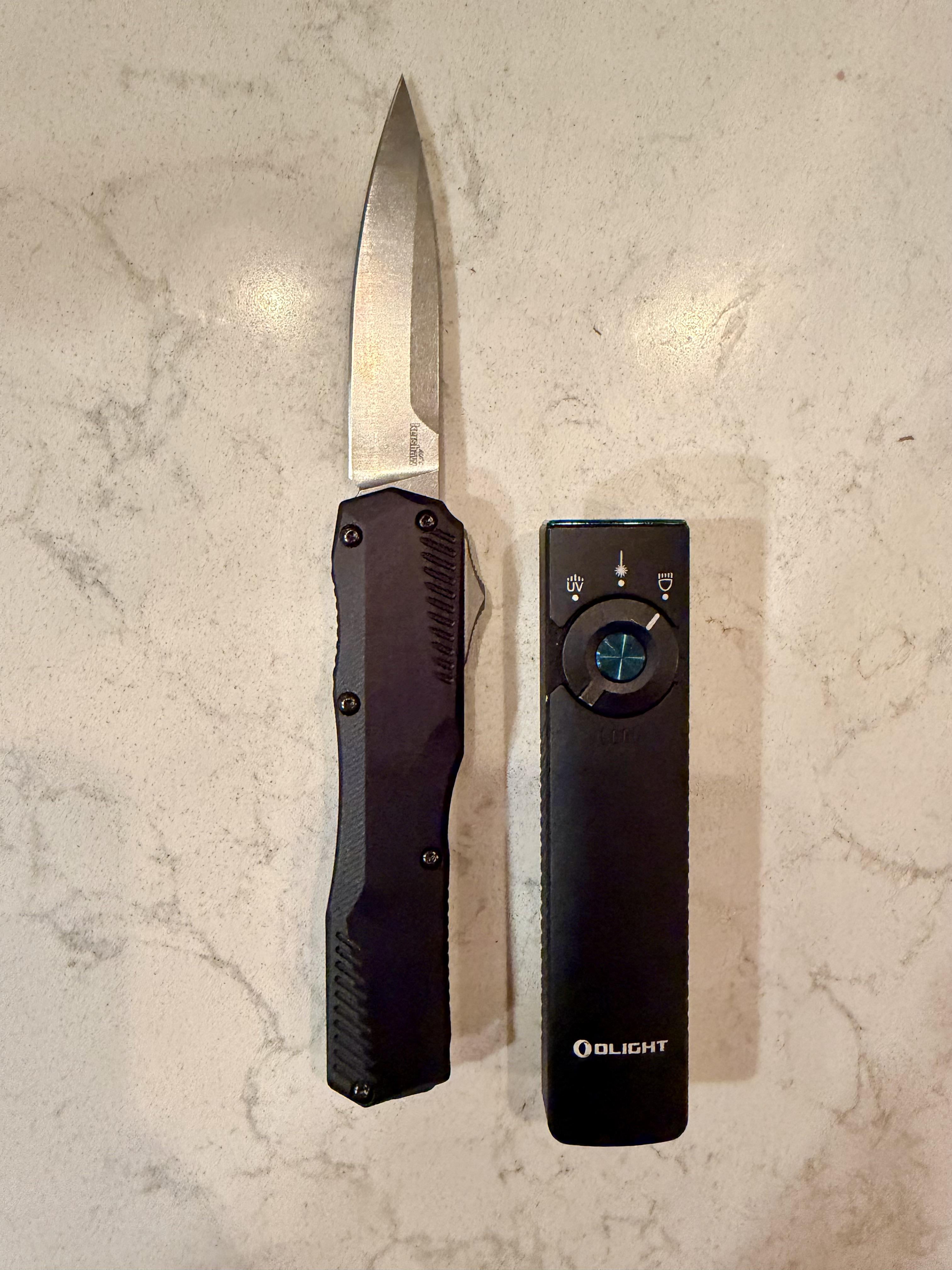 Kershaw Livewire OTF auto and Olight Pro.