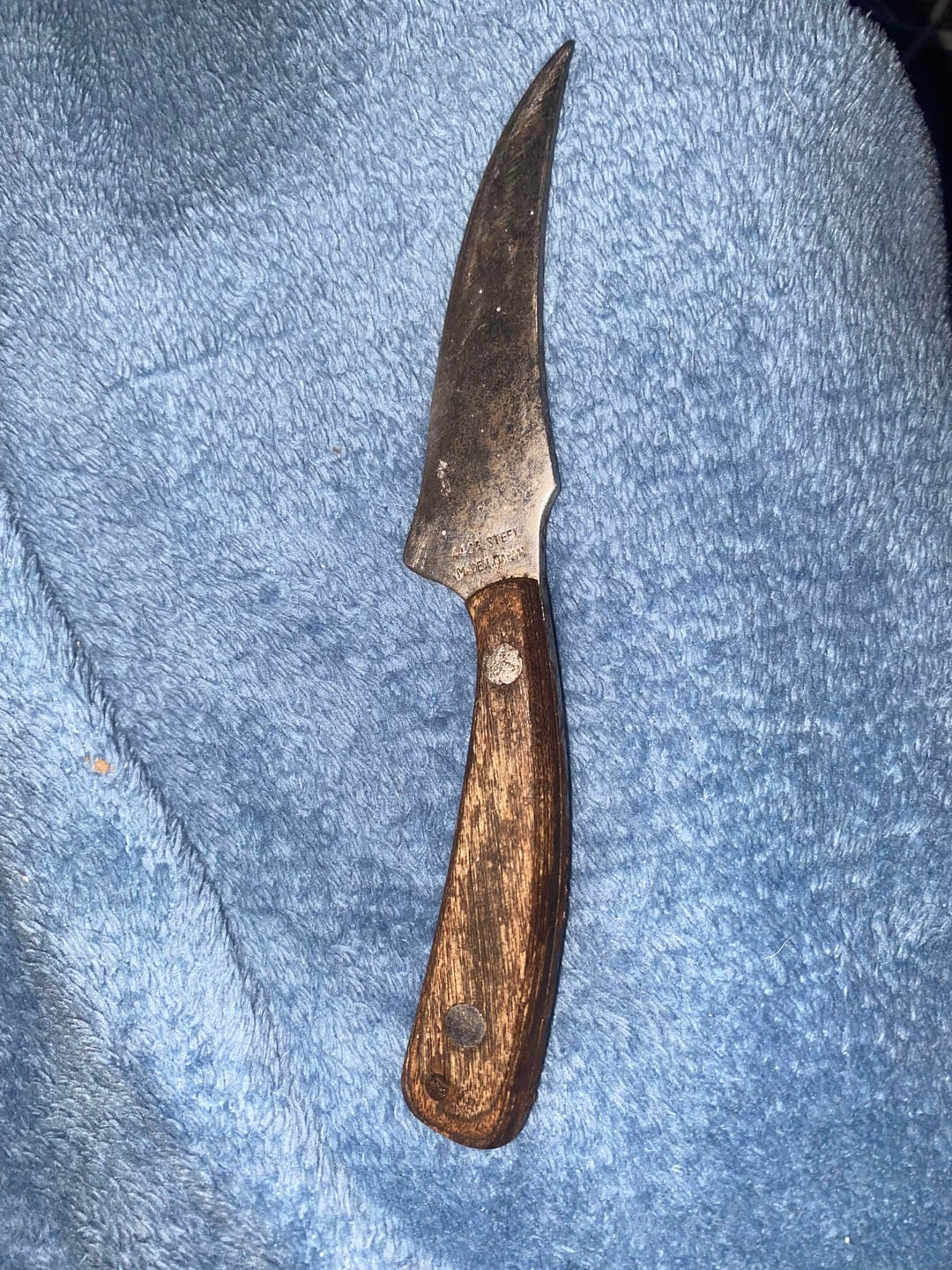 Get what you can with a bras wire brush and sharpen it. I wouldn’t soak it in anything to get rid of the rust, that could damage the wood. If you’re willing to redo the whole thing remove the grips and soak it in Evaporust. I’ve always had success using that.