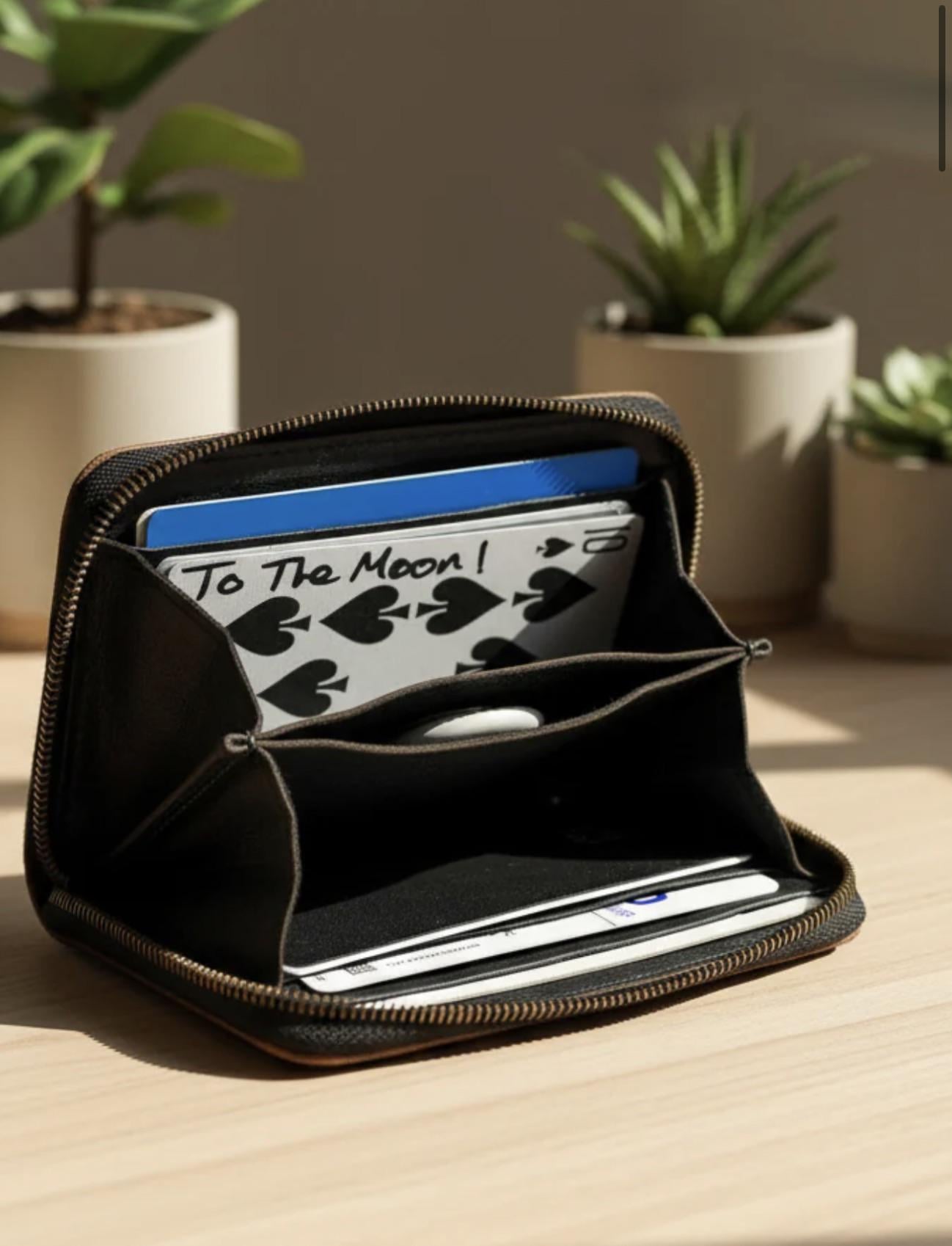 I’m not trying to identify the exact wallet in the pic, but I’m using it as a reference for the inside layout. I want a zip-around men’s wallet (leather or canvas is fine) with that accordion-style interior + flaps/dividers.