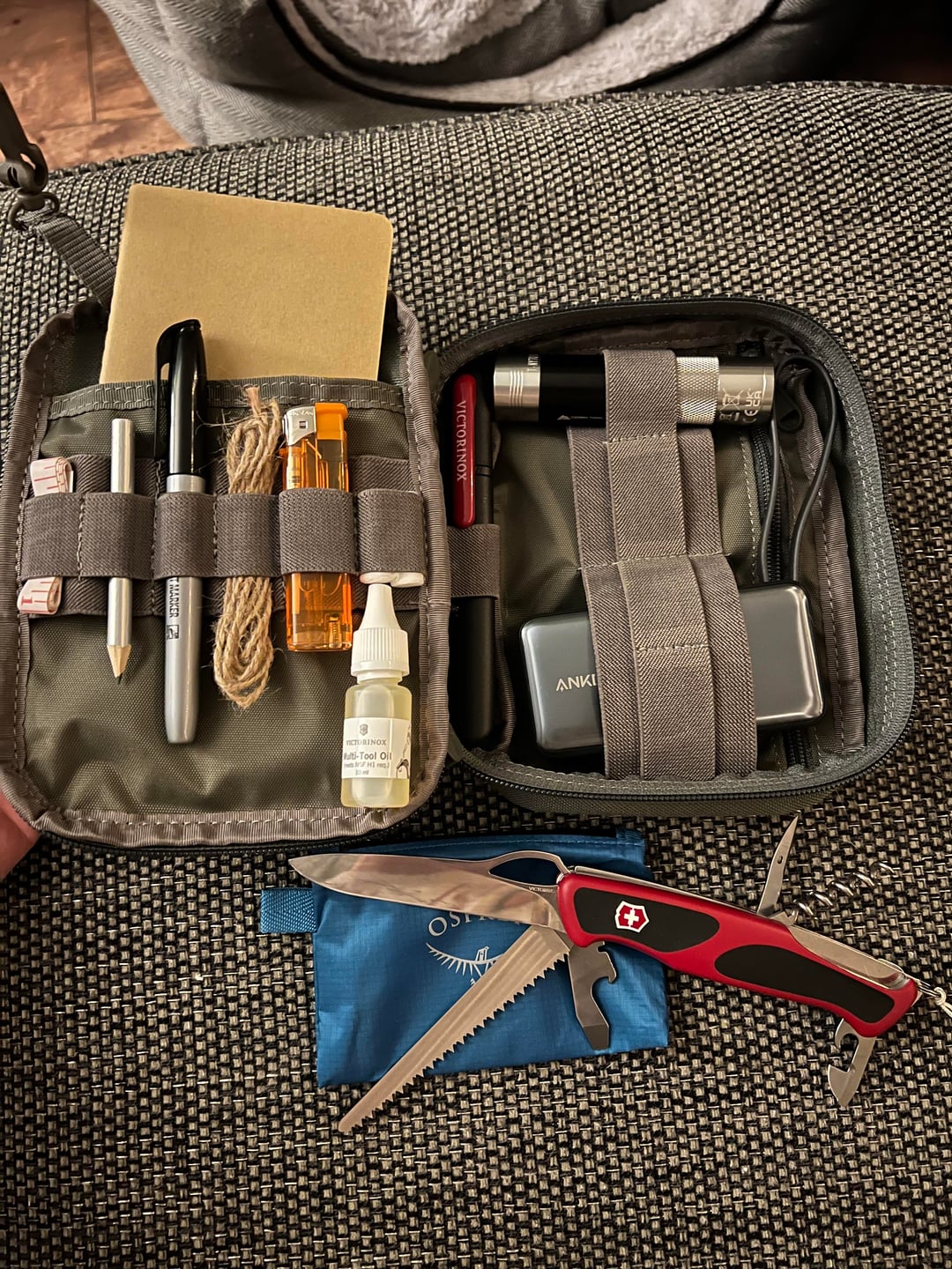 I carry a Swiss champ in my pocket everywhere so this pouch is in addition to that, any recommendations for any additions greatly appreciated.
