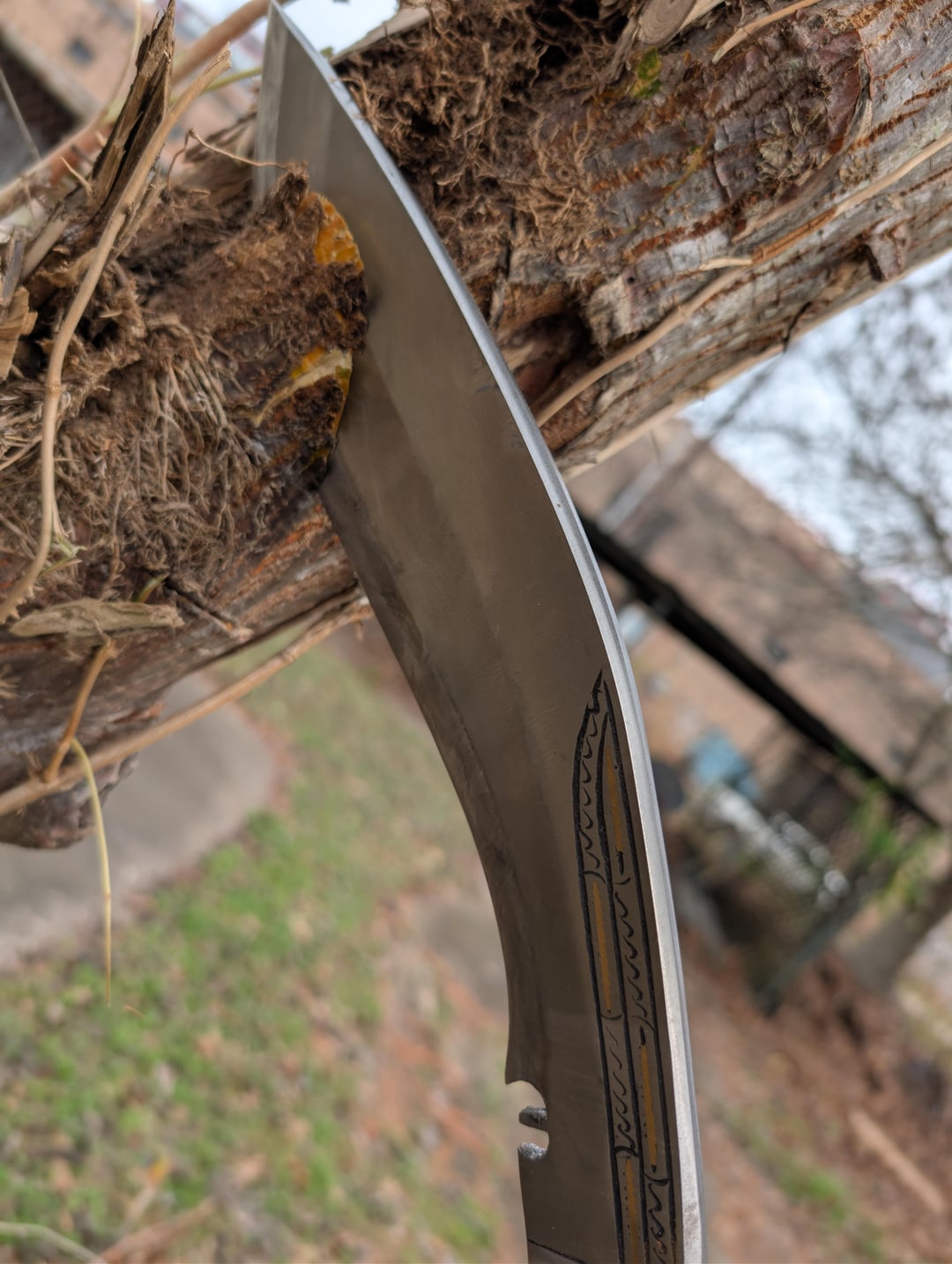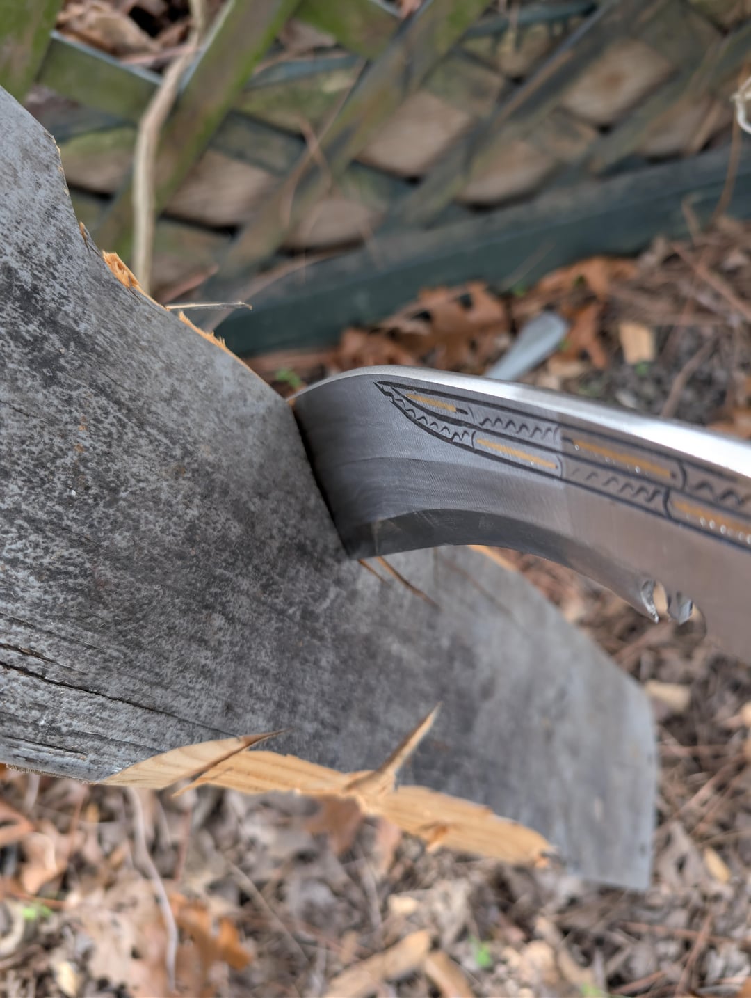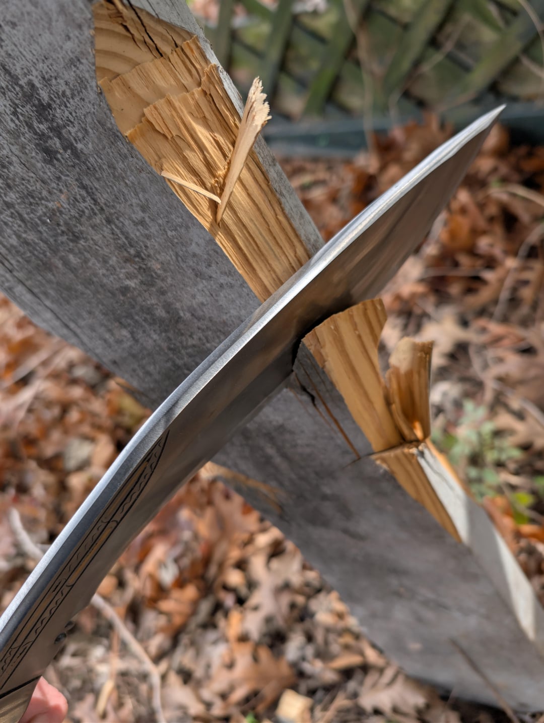 My first real kukri. Got it from Kult of Athena. It's made by Ex Gurkha Kukri House. 12" blade. Roughly 1/3" thick at the thickest part. 5160 steel. Honestly really happy with it! Obviously it's a real monster of a knife but I could still get some decent curls out of it. I'll do a more significant reprofile and sharpening eventually. To the surprise of literally no one it hits like a damn sledgehammer. None of the cuts in this were swinging for the fences. It was mostly just adding a bit of speed and direction to its natural fall. If this thing gets away from you it is going to be a very bad day. All in all I am very happy with it, especially for $100 it cost.
