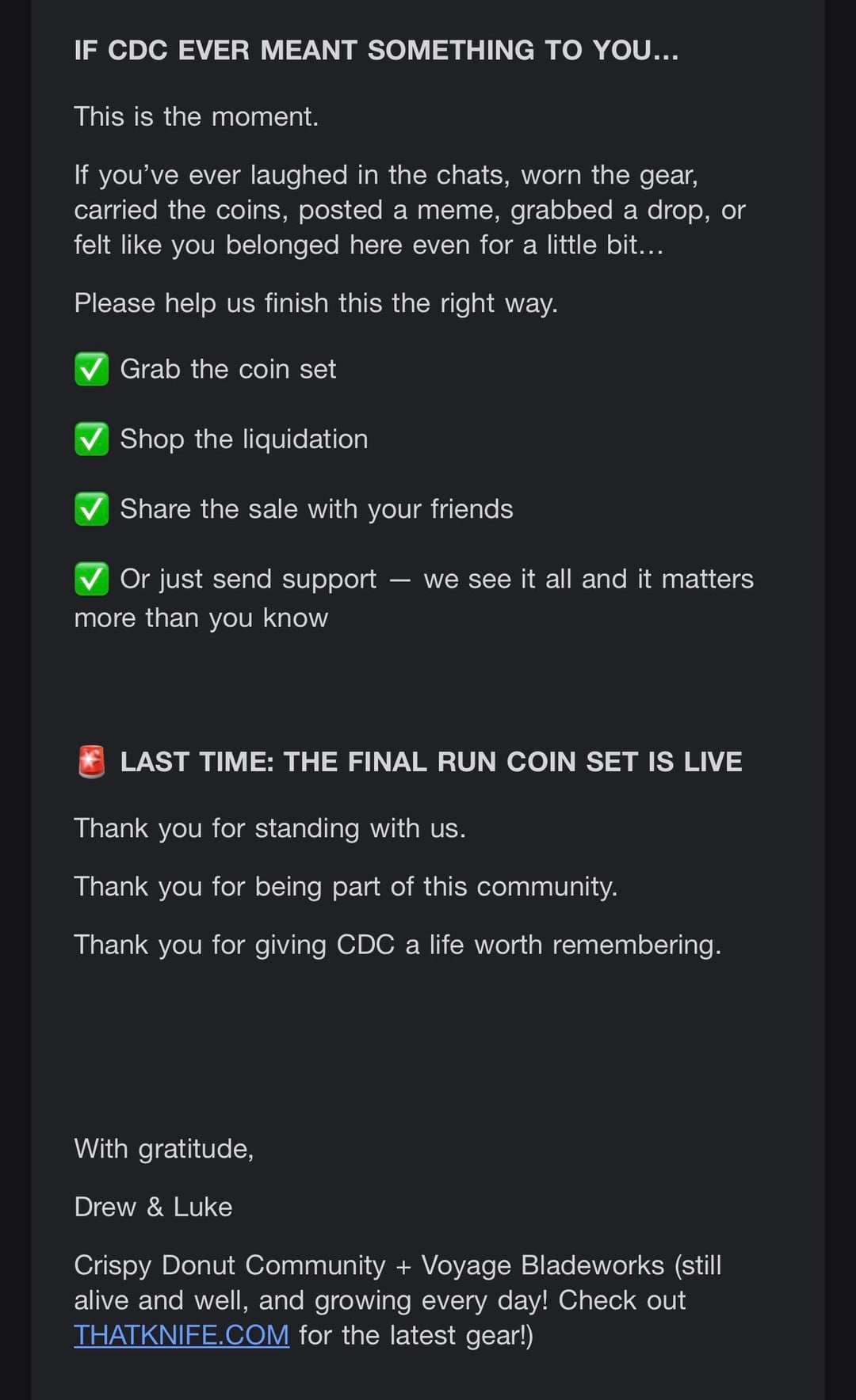 In KNIVES Crispy Donut Community is closing down. December 30, 2025 Bummer. I liked the look of a lot of their knives.by Kostrom KnifeKnife ClubKnives Prev Post What’s reddit’s expert advice on this peculiar find? December 30, 2025 Next Post Is this fake? December 30, 2025 Related Posts Salt Microjimbo January 14, 2026 NKD – Launch Iridium in Blue – Magnacut blade, made in the USA. January 14, 2026 What am I missing… January 14, 2026Write A CommentYou must be logged in to post a comment.