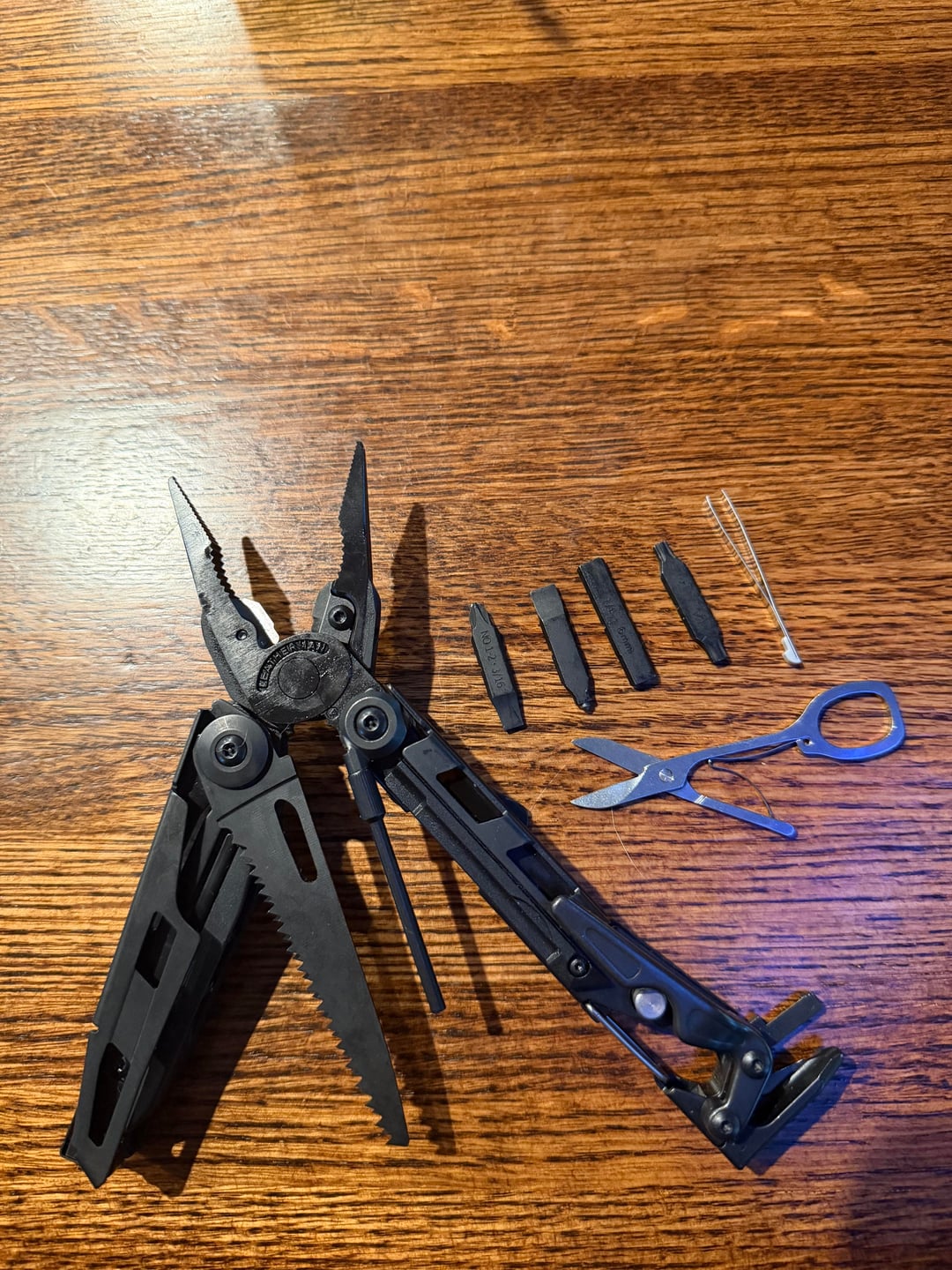 – Second extended bit slot changed to two standard Leatherman bits: 1/4 + 6mm Hex and T20 + T25 Torx