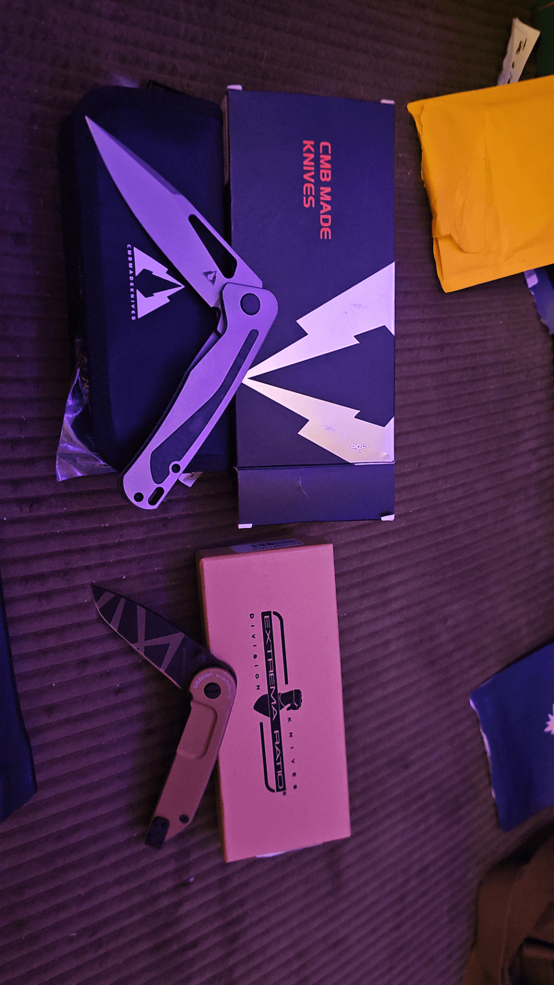 Hey guys these are my newest knives. A Camillus Heathen Knife, CMB Made Knives Spear 04G Flipper, and Extrema Ratio BF1 CD Desert Warfare Knife. At first I didn't really like the feel of two of them the Extrema and CMB, but as I started to mess around I really liked how they felt. I have a lot of knives and I never had a blade so polished at the blade. It's extremely sharp but it's mirror smooth all my other knives have some kind of marks from sharpening them on whatever the places use. I hope you enjoy them