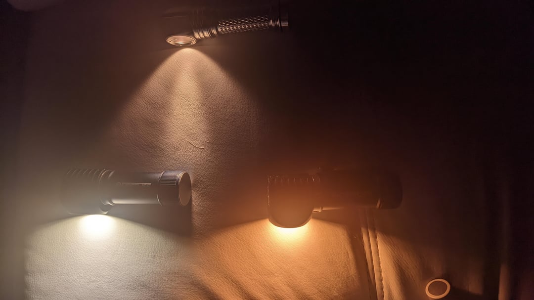 L50: 2700K, golden and slightly rosy. Two L60s: 3700K and 1800K.