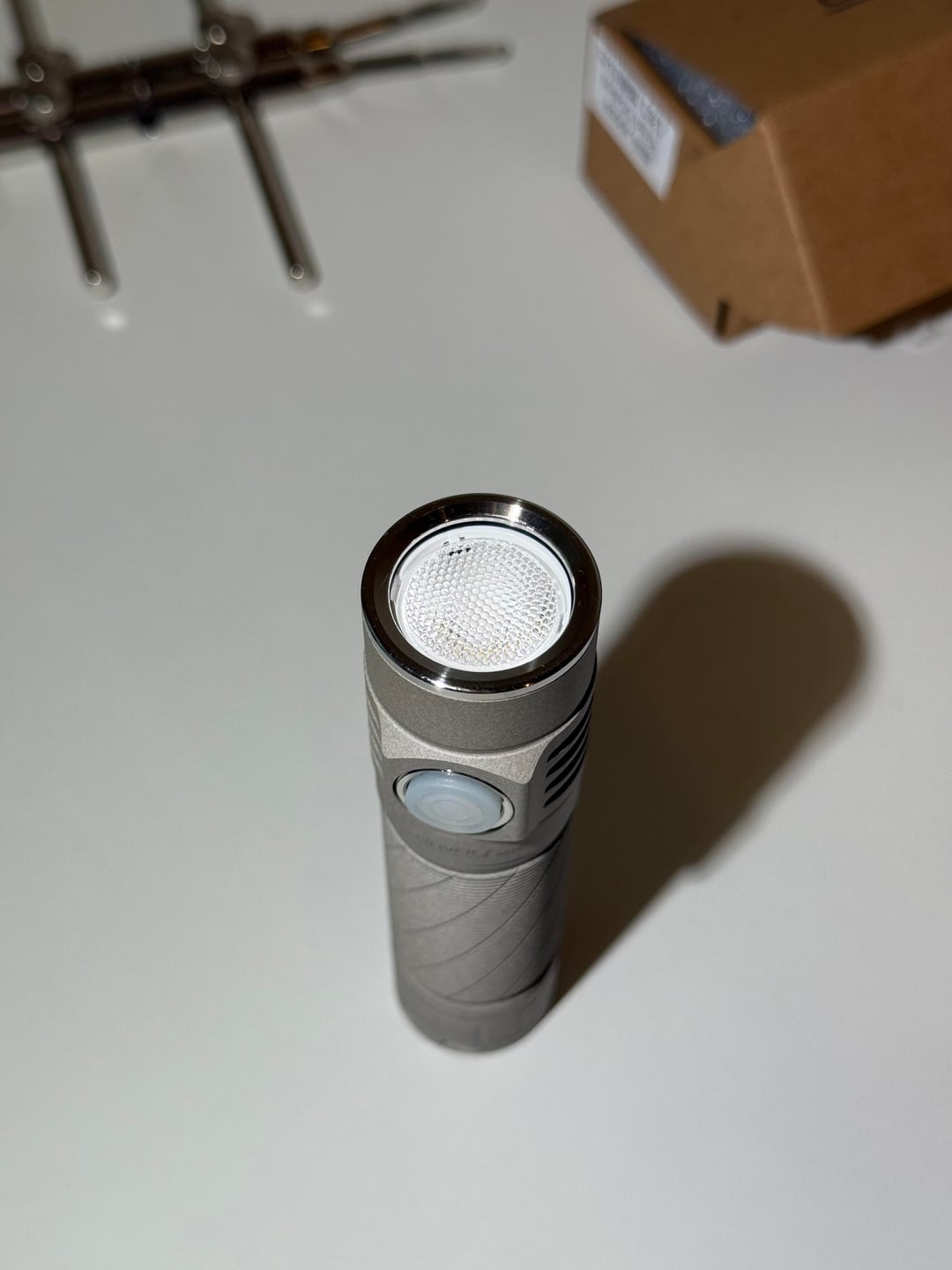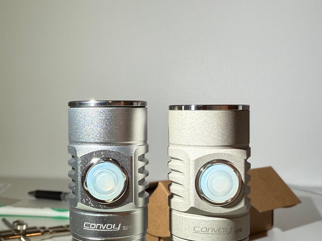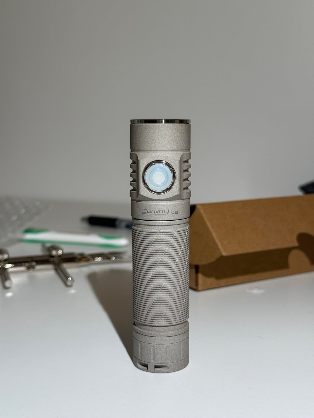 This is my second Convoy S21E, this time with the XHP 50.3 HI R70 4000K. It's also my first MAO flashlight. I decided to use a 23.3mm TIR lens (60deg) because it allows for the bezel to be fully screwed down, at the cost of not being able to use the glass lens. I'm not sure how an exposed TIR lens would affect durability and water ingress protection.