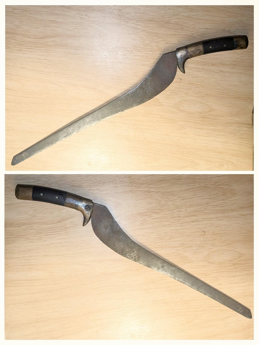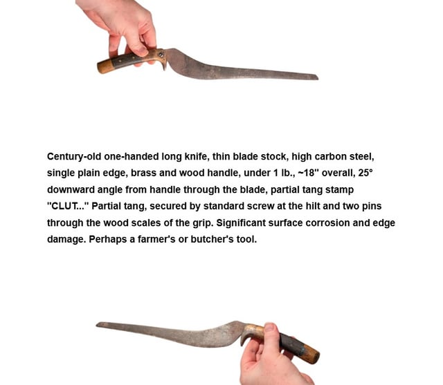 I sure would appreciate someone's insight into this antique blade from a deceased collector of obsolete tools, likely from an auction lot of others for barn, bench, or kitchen (here in the U.S.). Partly visible is a tang stamp: "CLUT…"