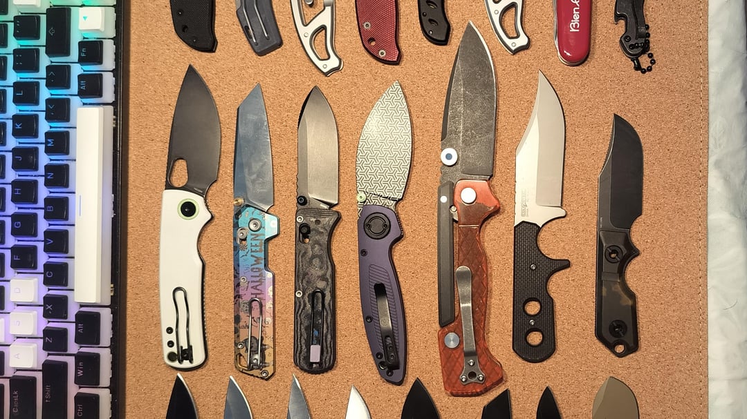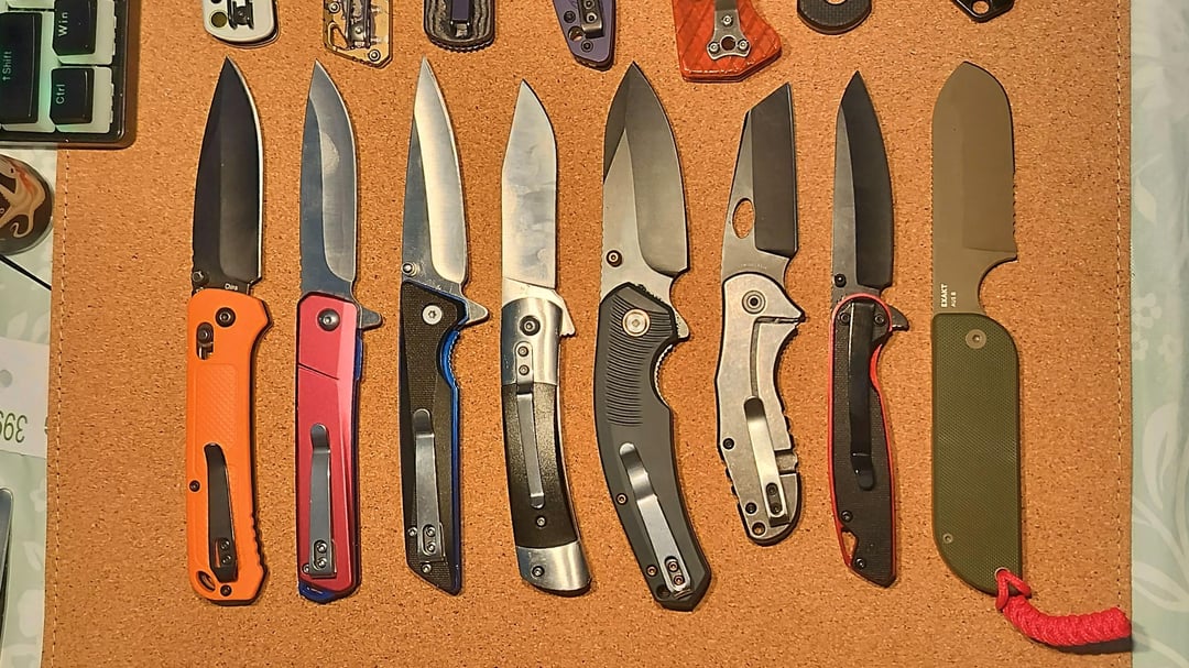 7&8: these are photos of the pointy objects i owned before joining any of reddits knife communities so 2023 and earlier. Lotta mall ninja/gas station stuff but theres a few classics in there like the Bucks and the Case lockback with swappable blades.