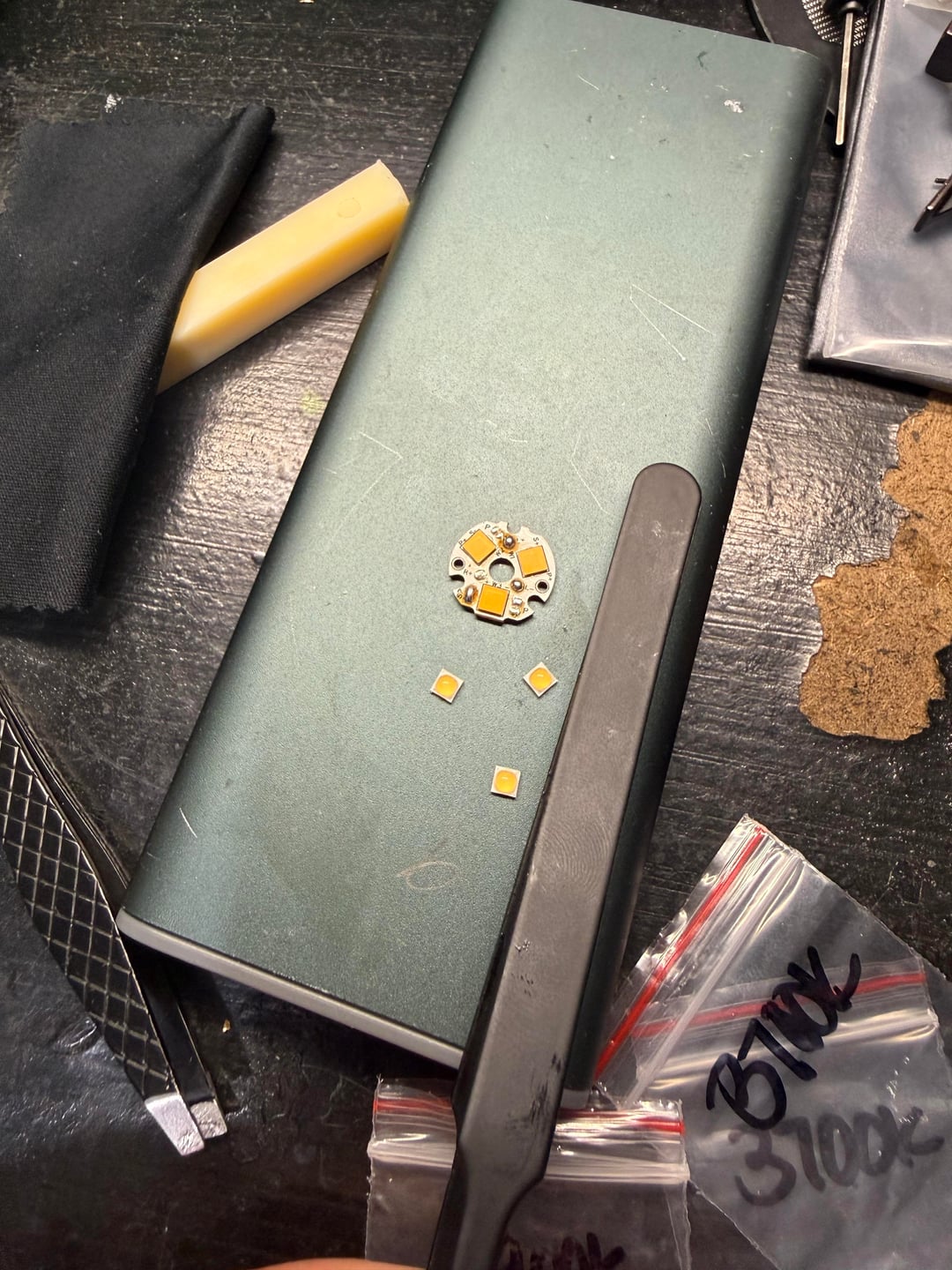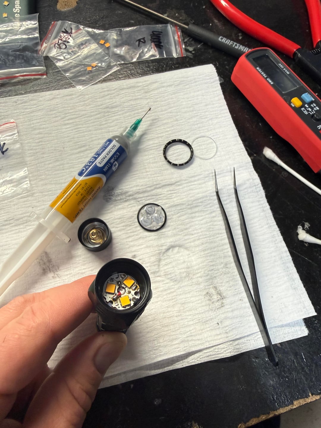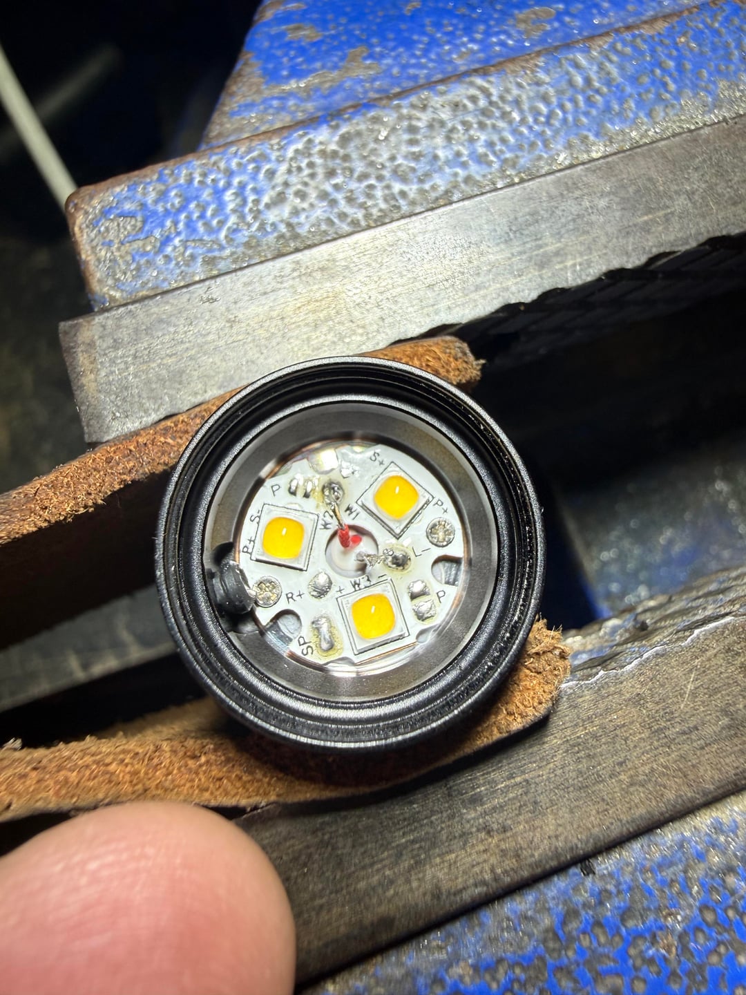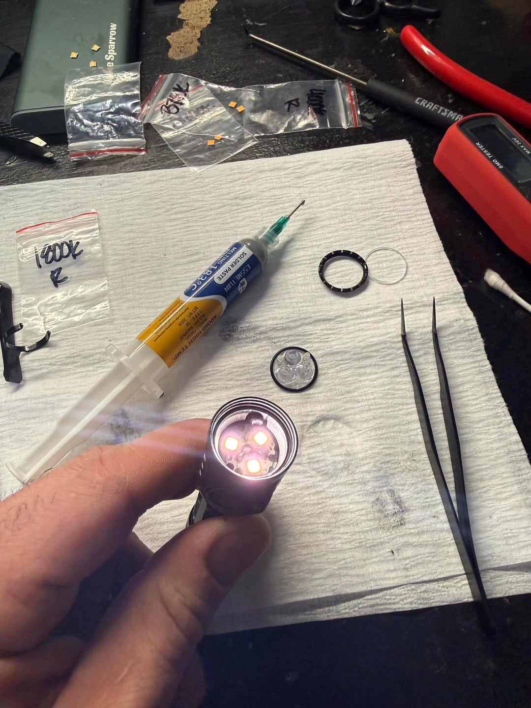 In Flashlight Modding my Skilhunt EC150 December 31, 2025 I did an emitter swap on my Skilhunt EC150. Out with the 519a 5000k and replaced them with FFL4000k rosy. The 4000k rosy emitters are so nice and are perfect for this host. What do you guys think? by Either_Astronomer_48 flashFlashlightlight Prev Post Anax question December 31, 2025 Next Post 1st Jackson Lee! December 31, 2025 Related Posts Any disadvantages replacing the double spring in my M21b for a lighted switch? January 16, 2026 Another one bites the dust January 16, 2026 COAST KL30R January 16, 2026Write A CommentYou must be logged in to post a comment.