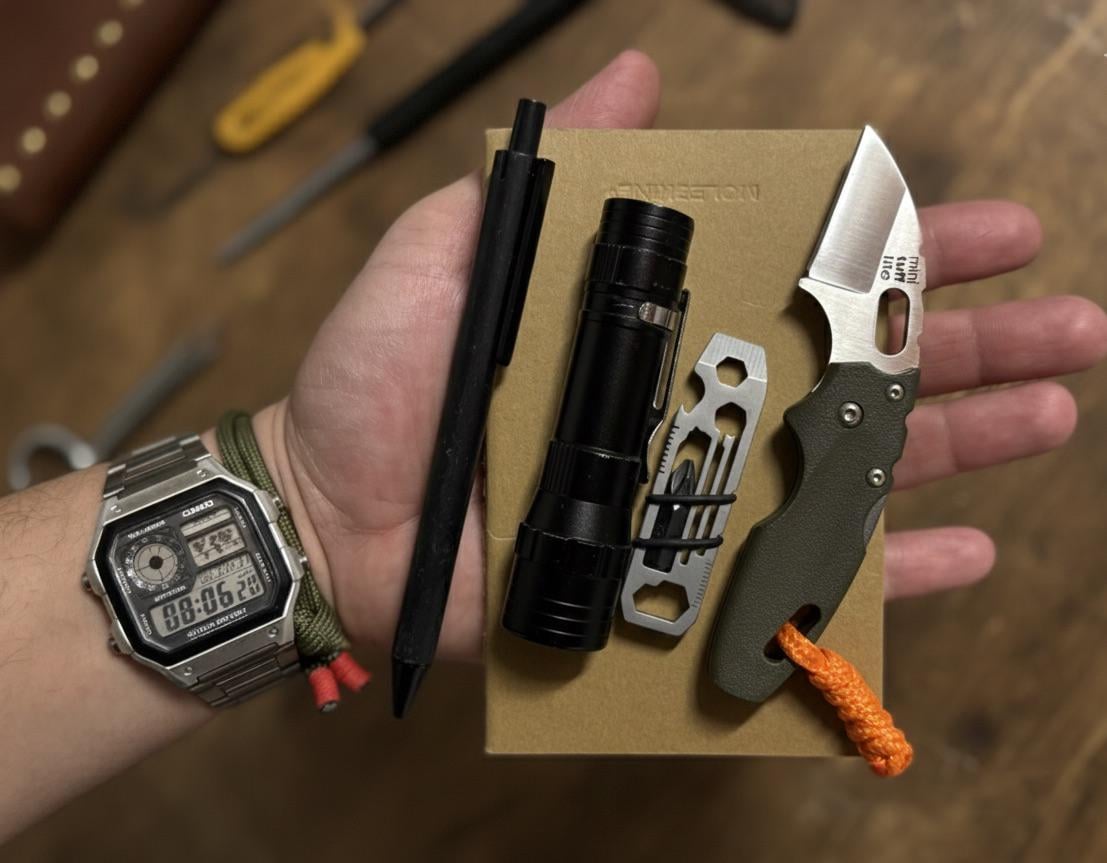 In EDC The last pocket dump of the year. December 31, 2025 Cold steel tuff lite miniFlashlight picked up at the electronics fairMulti toolMoleskine notebookPenCasio AE1200-WH by Ragno_4 EDC Prev Post Hellbender Snot Otter is fucking lit December 31, 2025 Next Post ALPHA December 31, 2025 Related Posts Mom of 3 EDC January 15, 2026 EDC in public transportation January 15, 2026 Today’s Pocket Dump January 15, 2026 1 Comment AutoModerator 2 weeks ago Thank you for posting to r/EDC! Include a detailed item list (make/model) within **1 hour** of submission. Lists can go in the title, a comment, or the image. Posts without lists will be removed. If you have already provided a list, not further action is needed, thanks | [FAQ](https://www.reddit.com/r/EDC/wiki/faq)*I am a bot, and this action was performed automatically. Please [contact the moderators of this subreddit](/message/compose/?to=/r/EDC) if you have any questions or concerns.*Write A CommentYou must be logged in to post a comment.
