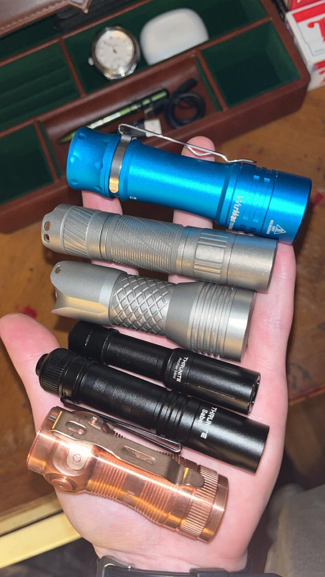 I wanna start this by saying I have not been in the hobby all that long but have been watching the sub for awhile. I had no idea flashlights could even be collectible to this extent and was always accustomed to cheapo flashlights and found my way to streamlight microstream. After losing it I figured it would start fresh and try and make knowledgeable purchases thanks to this sub. Once again, I’m still a novice but have learned a lot. First pic is in order of purchase: