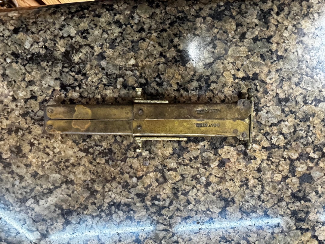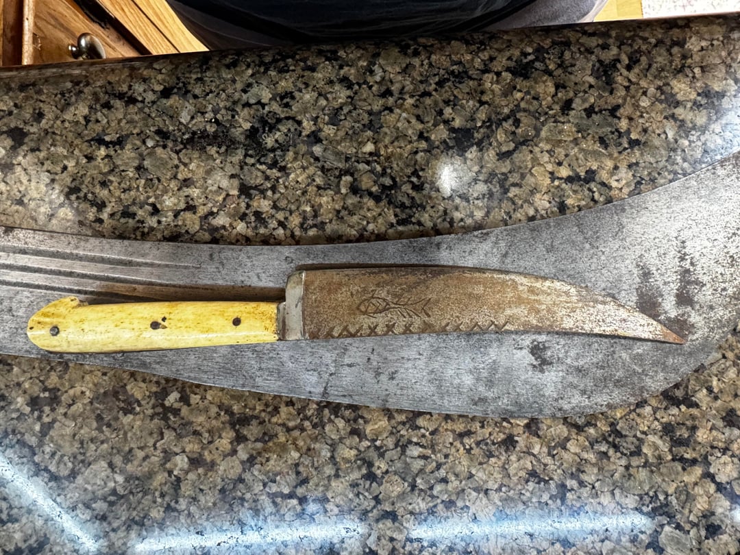 In KNIVES Need help identifying knives January 1, 2026 I got some knives from my uncle and need help identifying them. Got a machete that has no edge. It says England Birmingham made in England. A collapsible bayonet type knife and one that appears to be handmade. by LightTheRaven KnifeKnives Prev Post Today’s Blade: Hinderer XM-18, BPU #496, Spanto 🐴 January 1, 2026 Next Post Is it “Door-key or Dor-see”? January 1, 2026 Related Posts AEB-L Stainless Chef with Curly Koa and Maple Burl. The Maple burl was a cut off from the Forged In Fire continental Calvery Sabre I made years ago and its made its way into this one lol. Carbon fiber and Micarta split with white G10 liners 🤙 January 16, 2026 AEB-L Stainless with Amboyna Burl and carbon fiber handle with carbon fiber. The split is made with Curly Koa and burlap Micarta. White G10 liners and mosiac pins. 🤙 January 16, 2026 New scales and clip on the PM2 I got for Christmas. January 16, 2026Write A CommentYou must be logged in to post a comment.