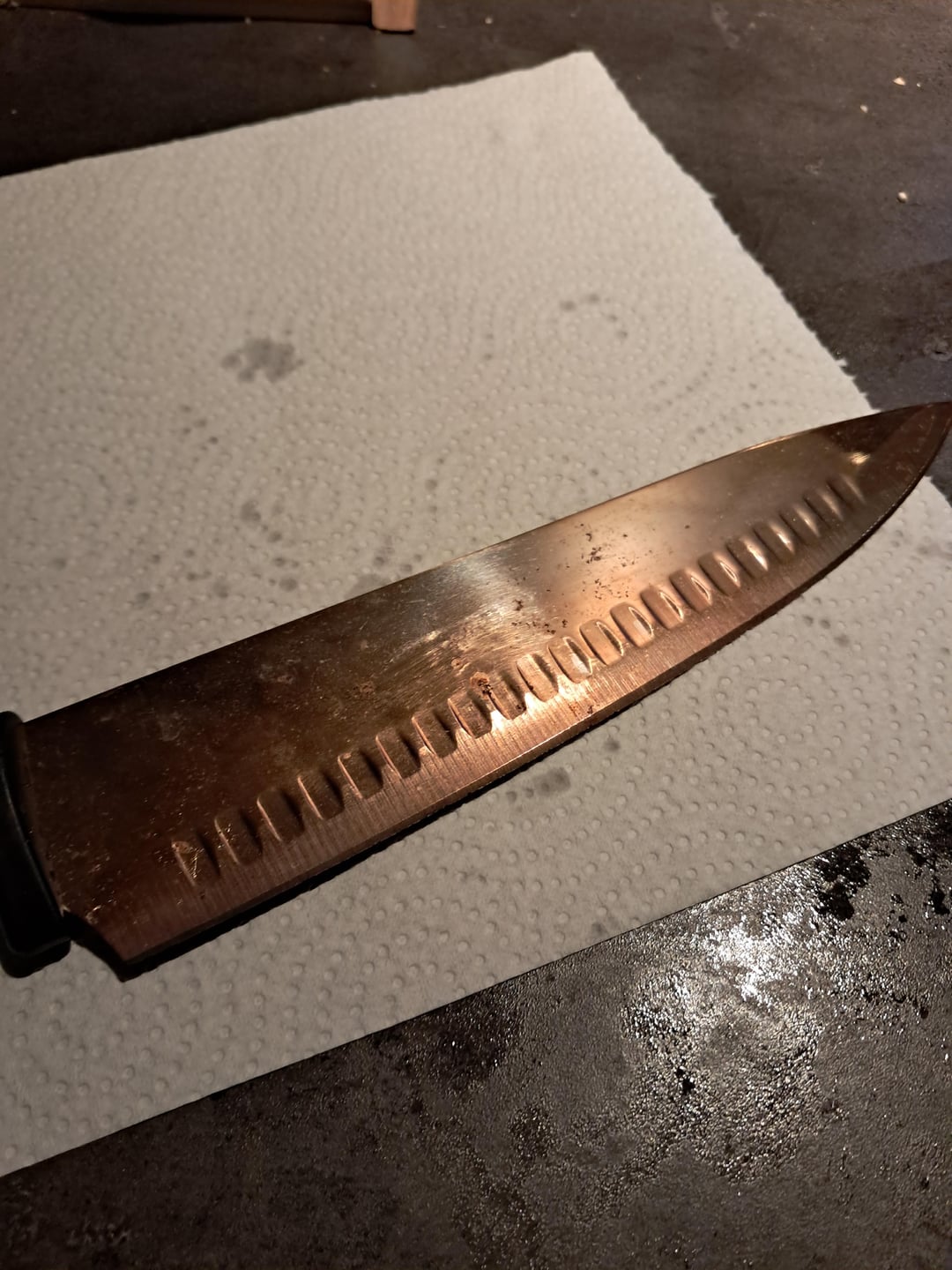 Not being a jerk, but it wasn’t a good knife when it was new. Shouldn’t be anything wrong with it but it’s closer to a throwaway than anything to worry about rendering useless or dangerous. Clean it up, sharpen it and use it.
