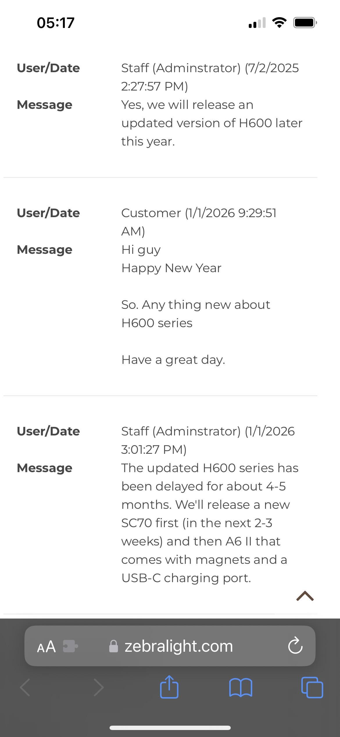 In Flashlight Zebralight next release. January 1, 2026 Zebralight next release. by VoHuq flashFlashlightlight Prev Post My knife of the year last year. Happy new year all! January 1, 2026 Next Post I’ve finally completed my dream edc sheath set up! January 1, 2026 Related Posts Foggy beam shots January 15, 2026 Nichia emitter getting some love in Journal of Hospital Medicine. January 15, 2026 Decisions decisions… Olight ArkPro vs. the Wurkkos HD01 Pro January 15, 2026 7 Comments PeterParker001A 2 weeks ago Zebralight introducing USB-C…., Interesting. Ok-Junket3623 2 weeks ago I’m on that USB-C charging release like white on rice baby that sounds fantastic johan851 2 weeks ago IMO lack of magnets is the biggest thing you give up with a Zebralight, and they’re still awesome. If they start adding magnets that would be amazing. Indybio72 2 weeks ago I’ll believe it when I see it flipyflop9 2 weeks ago Well, there goes my wallet. bigbuckdj 2 weeks ago I wonder if they will change the a6 emitter. Also sc70? Is that like a sc65 but a 21700? Or did they mean sc700? Hmmm glockguy__ 2 weeks ago SC70? Wonder what that will be. Hopefully a completely new light, and hoping it wasn’t a typo that they meant SC700Write A CommentYou must be logged in to post a comment.