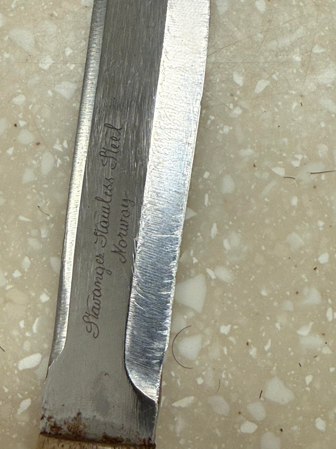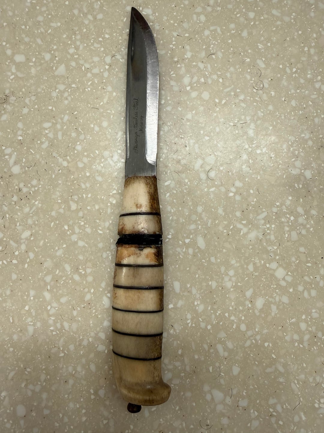 So I just inherited my great-grandfather's knife from Norway. I was just looking at some advice on it. The handle is broken, so it's free-floating below the black section, which is a wrapped piece of leather from many years ago. I just want the knife repaired so it's in better condition. What should I be looking for in a craftsman to get this work done or should I just leave it as is?
