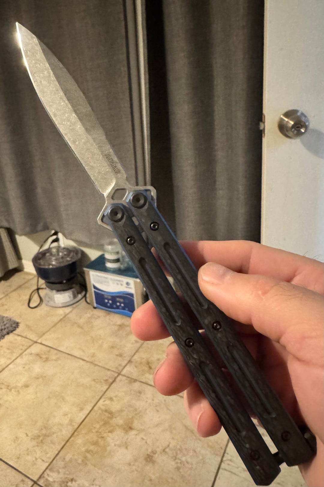 I’m not a Bali guy, but I couldn’t pass up the sale price on this 5150CF. The steel choice was a bit curious to me, I love 20CV but not on this kind of knife. Sure enough it fell off my bed in the open position and both bent and broke the tip. Did my best to fix it and here’s the results.