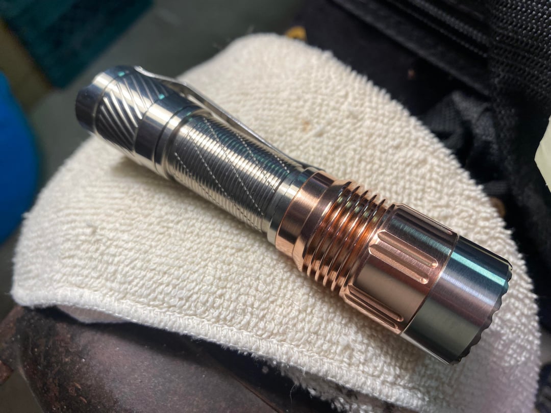 My EDC; SFT40 3000k. Used 000 steel wool and a bit of alcohol to remove the clear coat, then simply let nature take its course. This is after about two weeks of regular use. Thought I’d share in case anyone is on the fence about doing this, I personally like the contrasting metals.