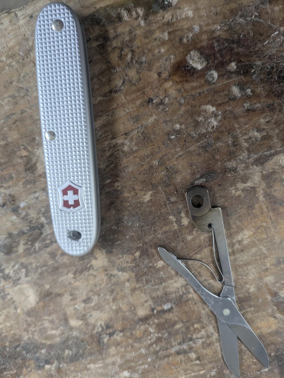 Swapped the knife blade for scissors. Recently I've been carrying a slipjoint Stanley knife along with a nicer slipjoint for food, I have no need for a third knife blade on my person. Scissors always come in handy though.