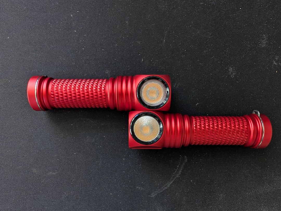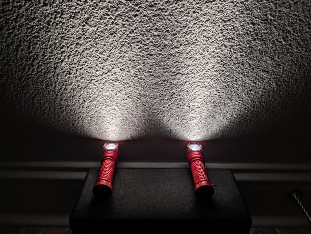 Pictured here, the L50 Sol with the 60-degree pebbled TIR vs the stock reflector, both with DC-Fixed Lenses. Emitter is the NTG50 4200K.