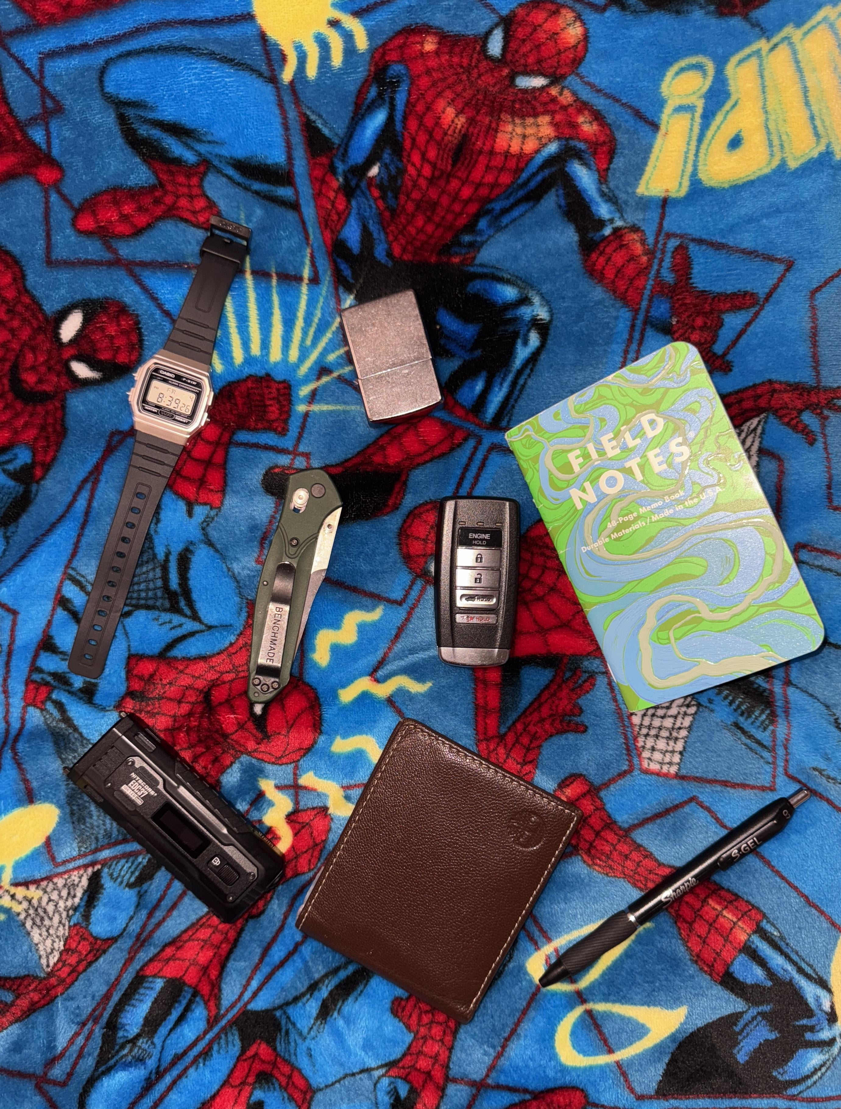 In EDC Friyay January 3, 2026 Casio f91wClassic zippo with butane insertBenchmade 9402017 Acura mdx keysField NotesNitecore EDC37Timberland WalletSharpie S gelby hotmanj0sh28 EDC Prev Post FFl707A M21B, E70, X1 January 3, 2026 Next Post My Convoy M21D XHP70.3 HI R70 LED powers off unevenly? January 3, 2026 Related Posts January EDC January 14, 2026 Hump Day Carry January 14, 2026 My EDC – But i like to call it AA – Annoyance Avoider January 14, 2026 1 Comment AutoModerator 2 weeks ago Thank you for posting to r/EDC! Include a detailed item list (make/model) within **1 hour** of submission. Lists can go in the title, a comment, or the image. Posts without lists will be removed. If you have already provided a list, not further action is needed, thanks | [FAQ](https://www.reddit.com/r/EDC/wiki/faq)*I am a bot, and this action was performed automatically. Please [contact the moderators of this subreddit](/message/compose/?to=/r/EDC) if you have any questions or concerns.*Write A CommentYou must be logged in to post a comment.